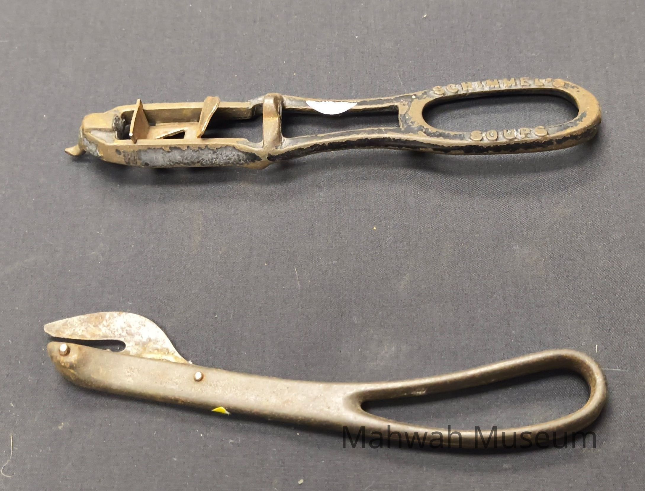 Two metal can openers, one made by Schimmel's SoupsCollection