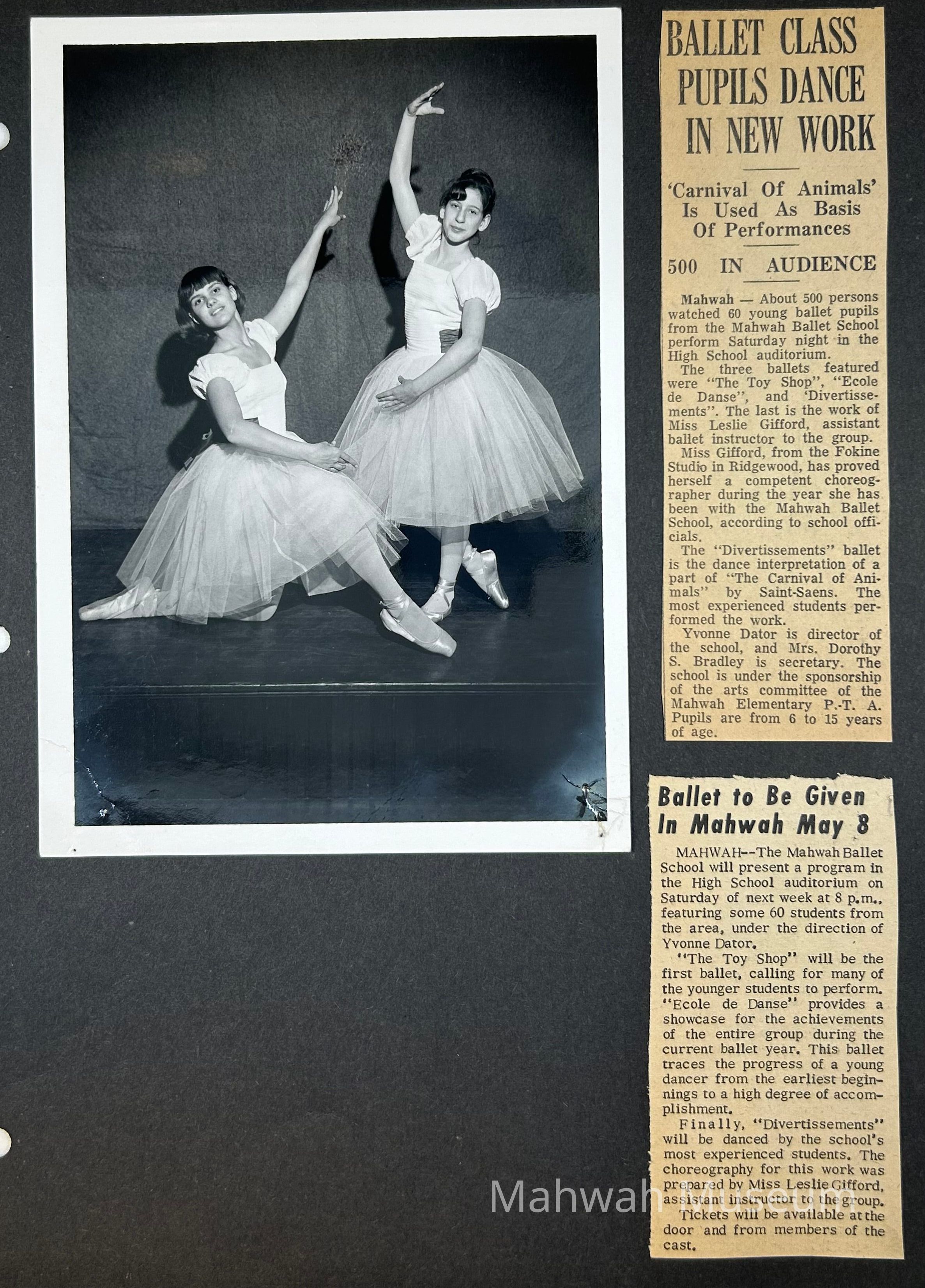 A photograph of an excerpt from a newspaper about students of Yvonne Dator performing in 3 different ballet recitalsPhotograph Details