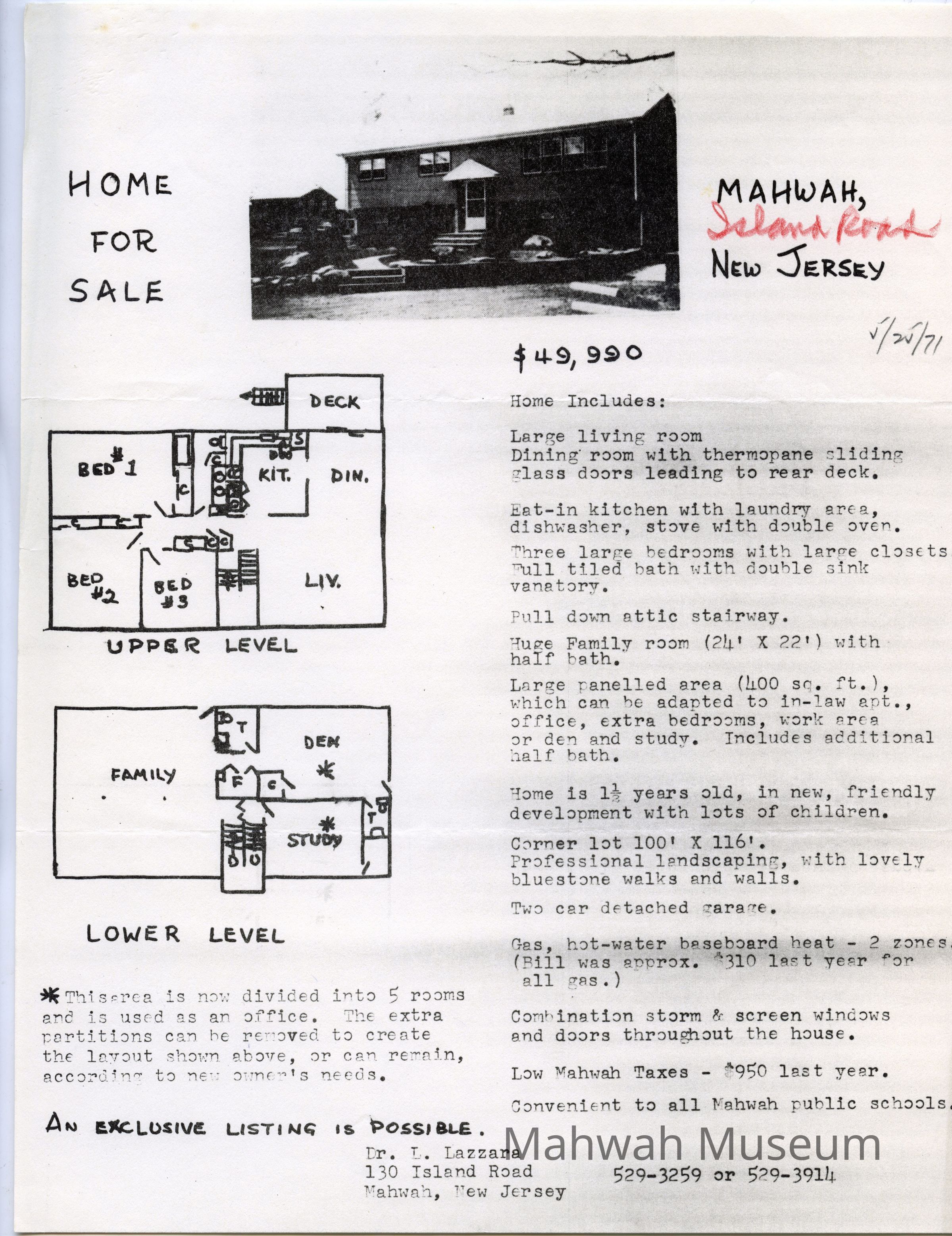 Photograph of house listing at 130 Island Road in Mahwah, NJPhotograph Details