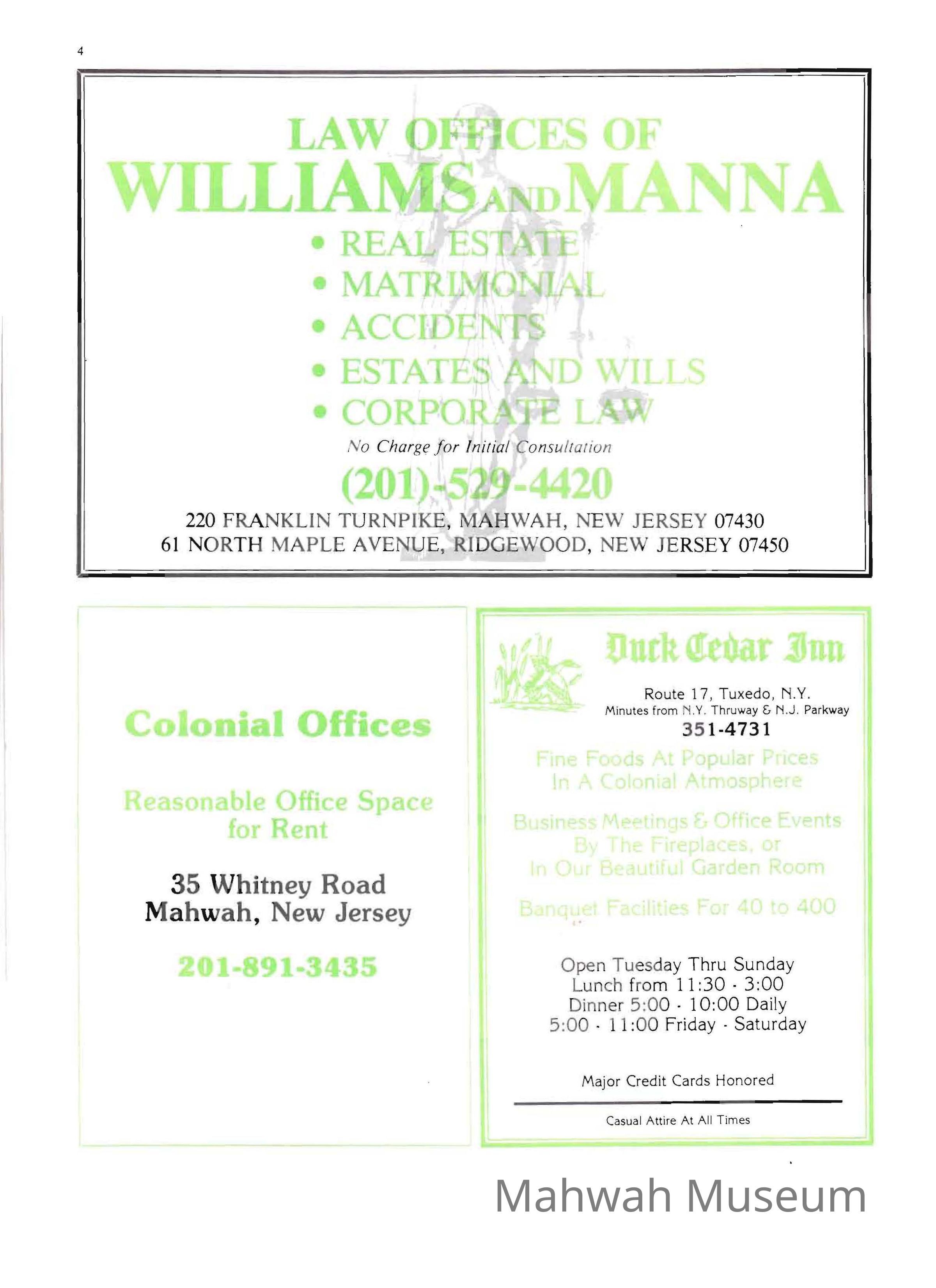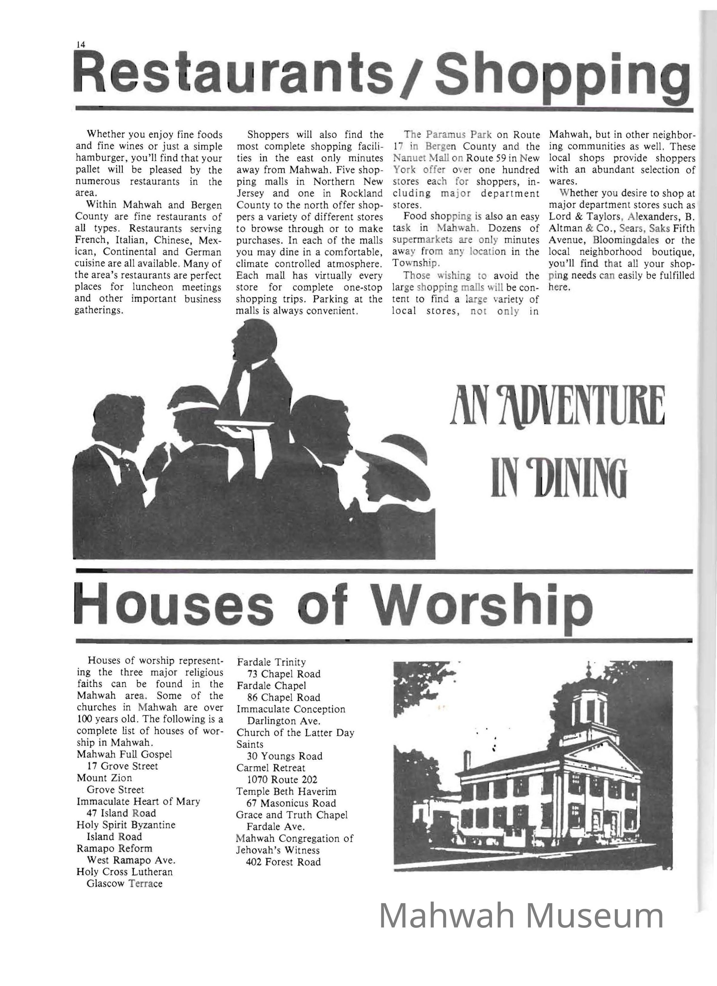1984 Mahwah, New Jersey Booklet published by the Mahwah Chamber of Commerce. Personal collection of letters, photos, and other documents of Isabel Hudson.Collection