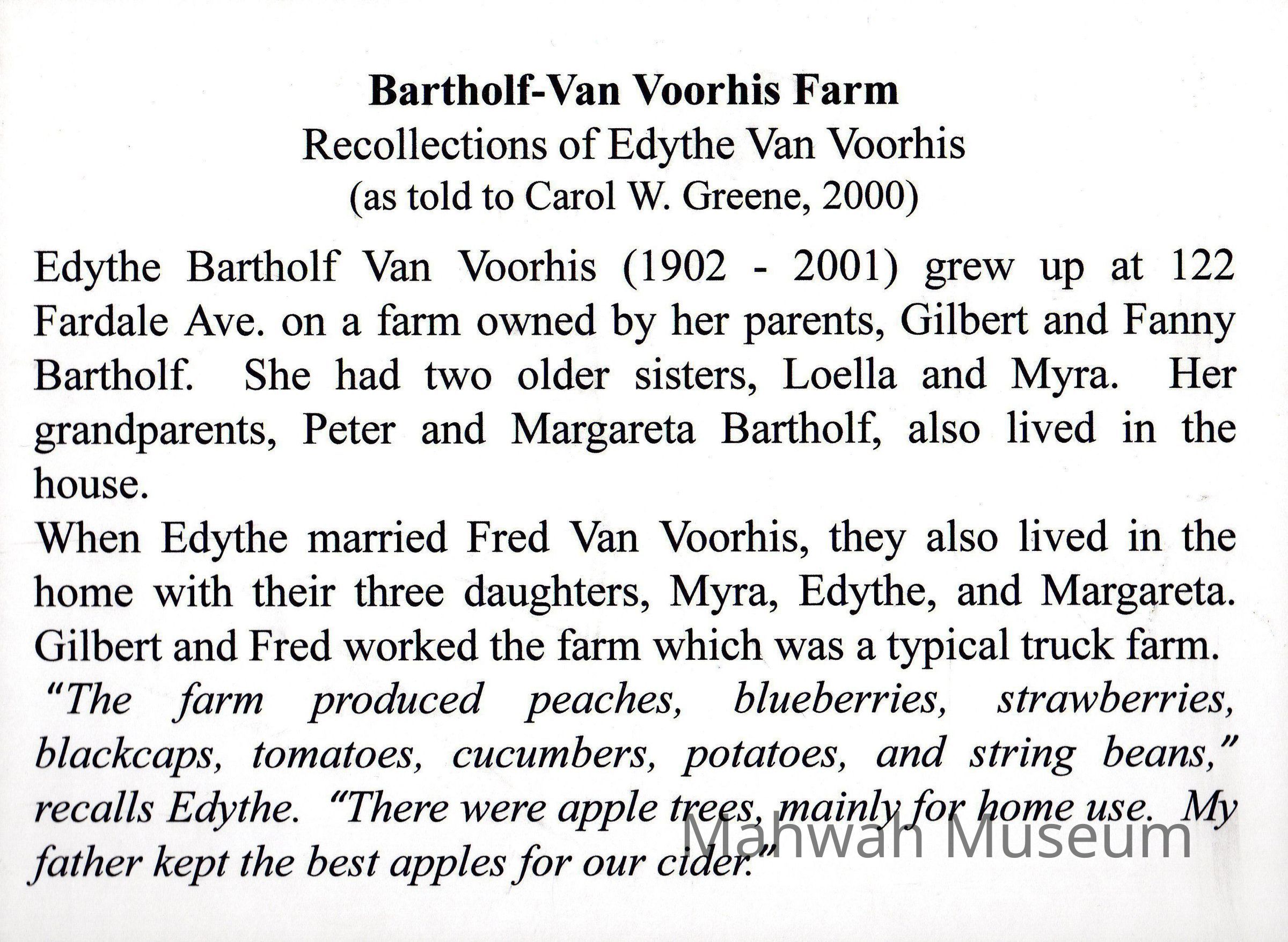 Edyth Van Voorhis. Captions in exhibit are 2013.09.07.273A and 2013.09.07.273B. From Neighborhoods of Mahwah Exhibit Panel 2013.09.07.205.Photograph Details