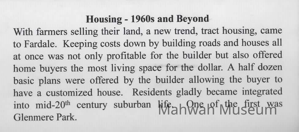 Housing-1960s and Beyond. Captions in exhibit are 2013.09.07.267A and 2013.09.07.267B. From Neighborhoods of Mahwah Exibit Panel 2013.09.07.244.