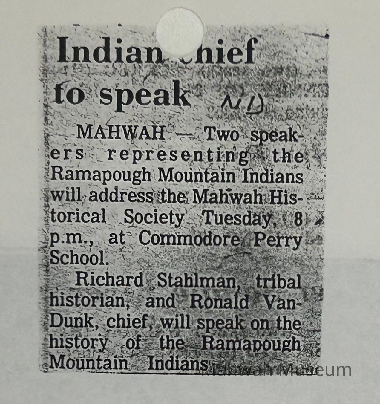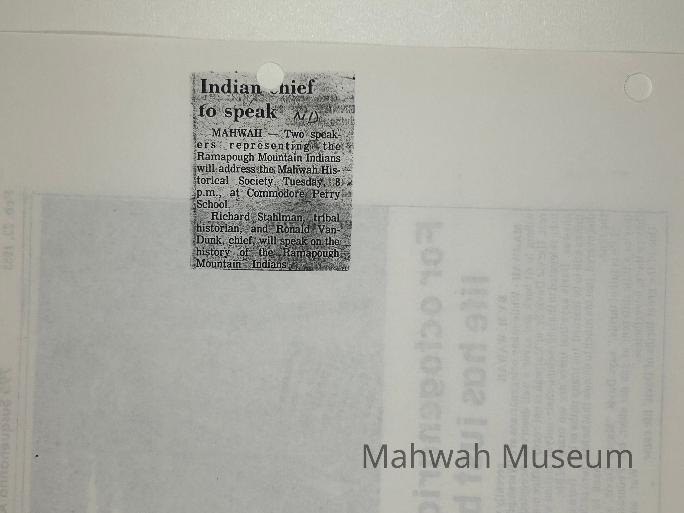 Mahwah Museum Vertical File Collection