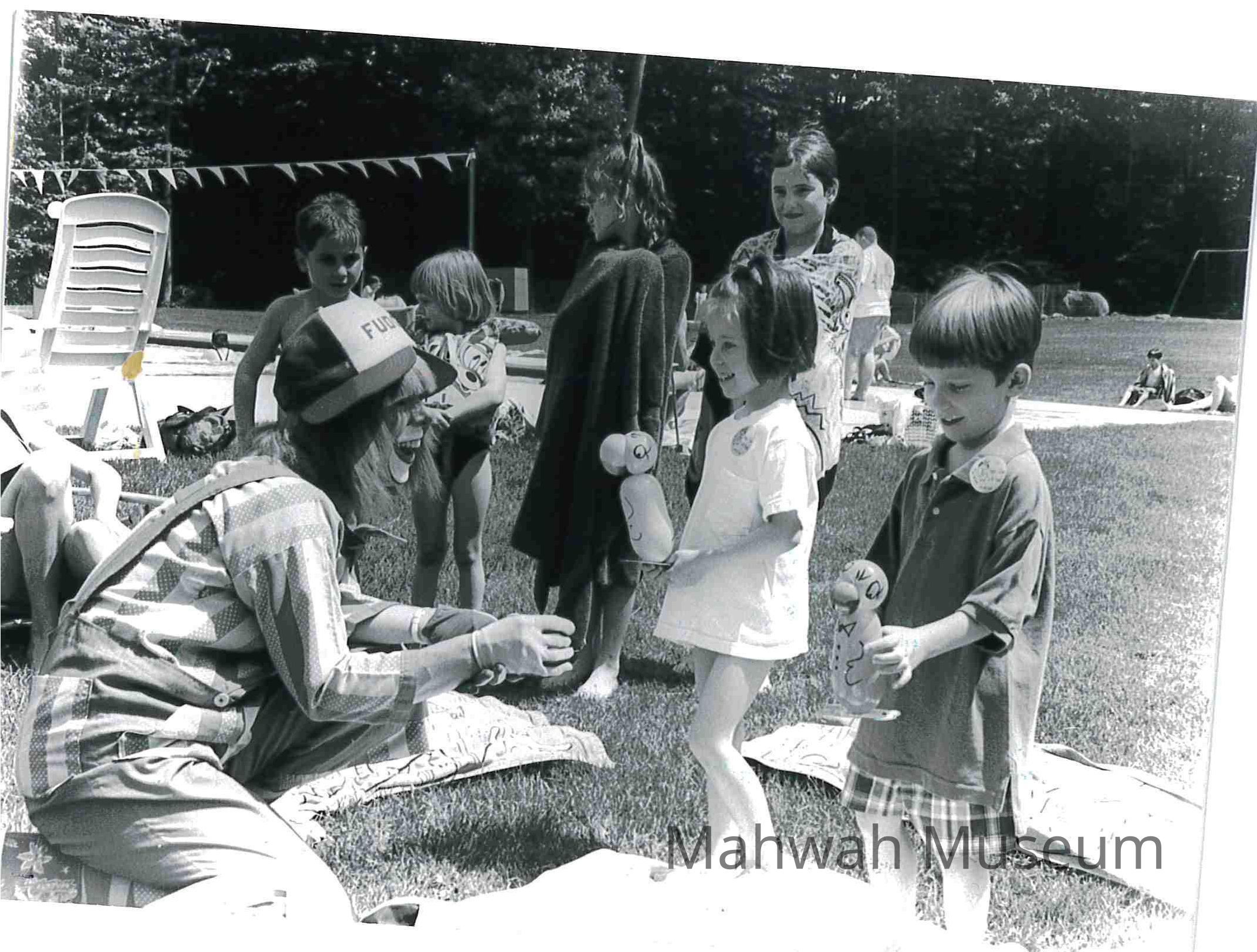 Photographs of a clown entertaining children at the Mahwah Pool