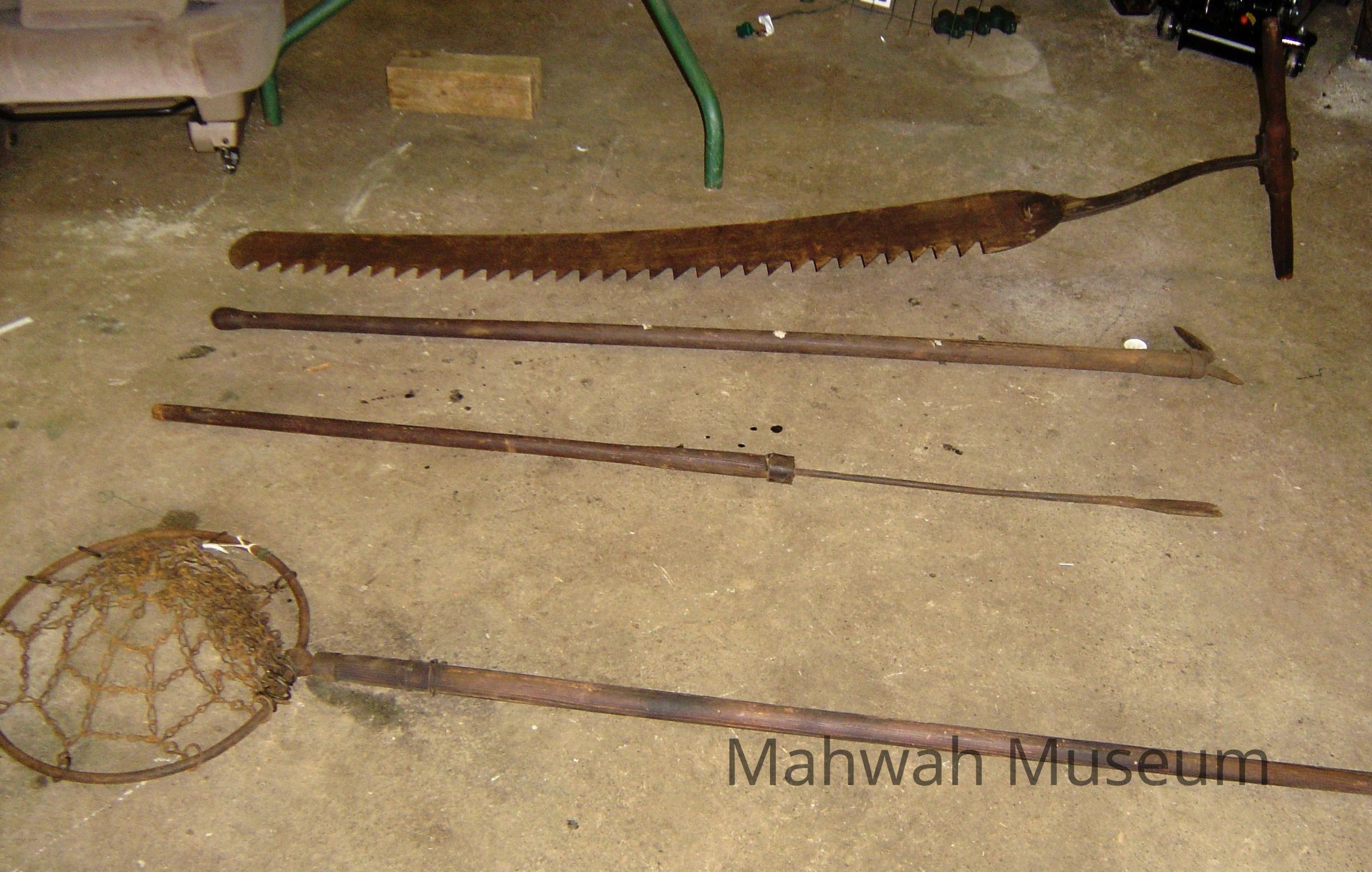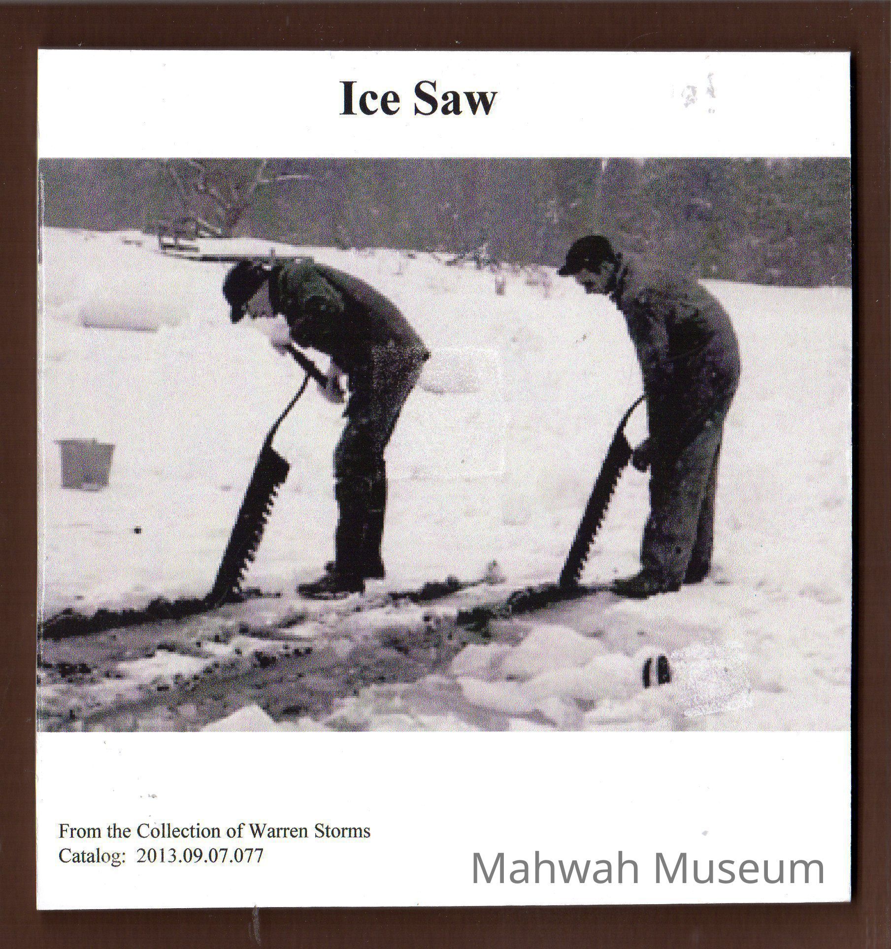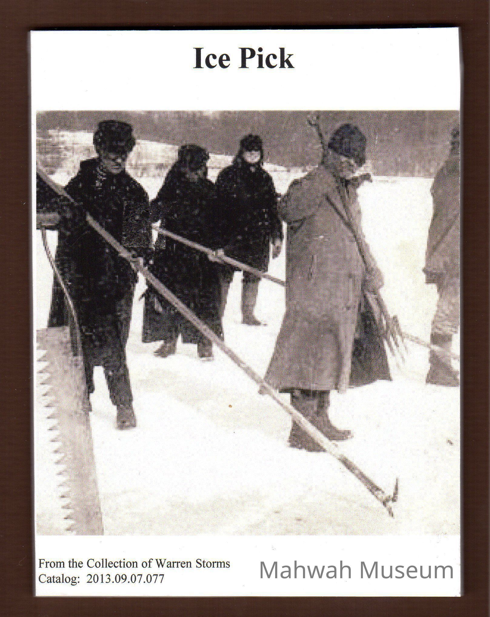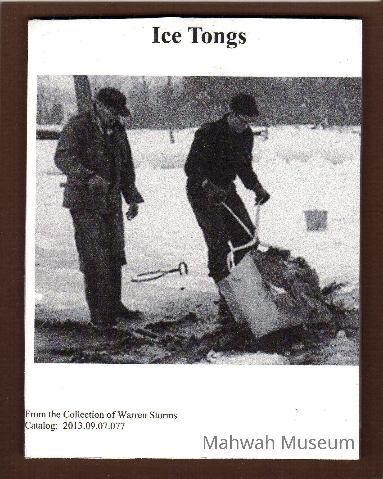 Ice Harvesting Tools. Contains pictures of Ice Tongs, Ice Pick and Ice Saw.