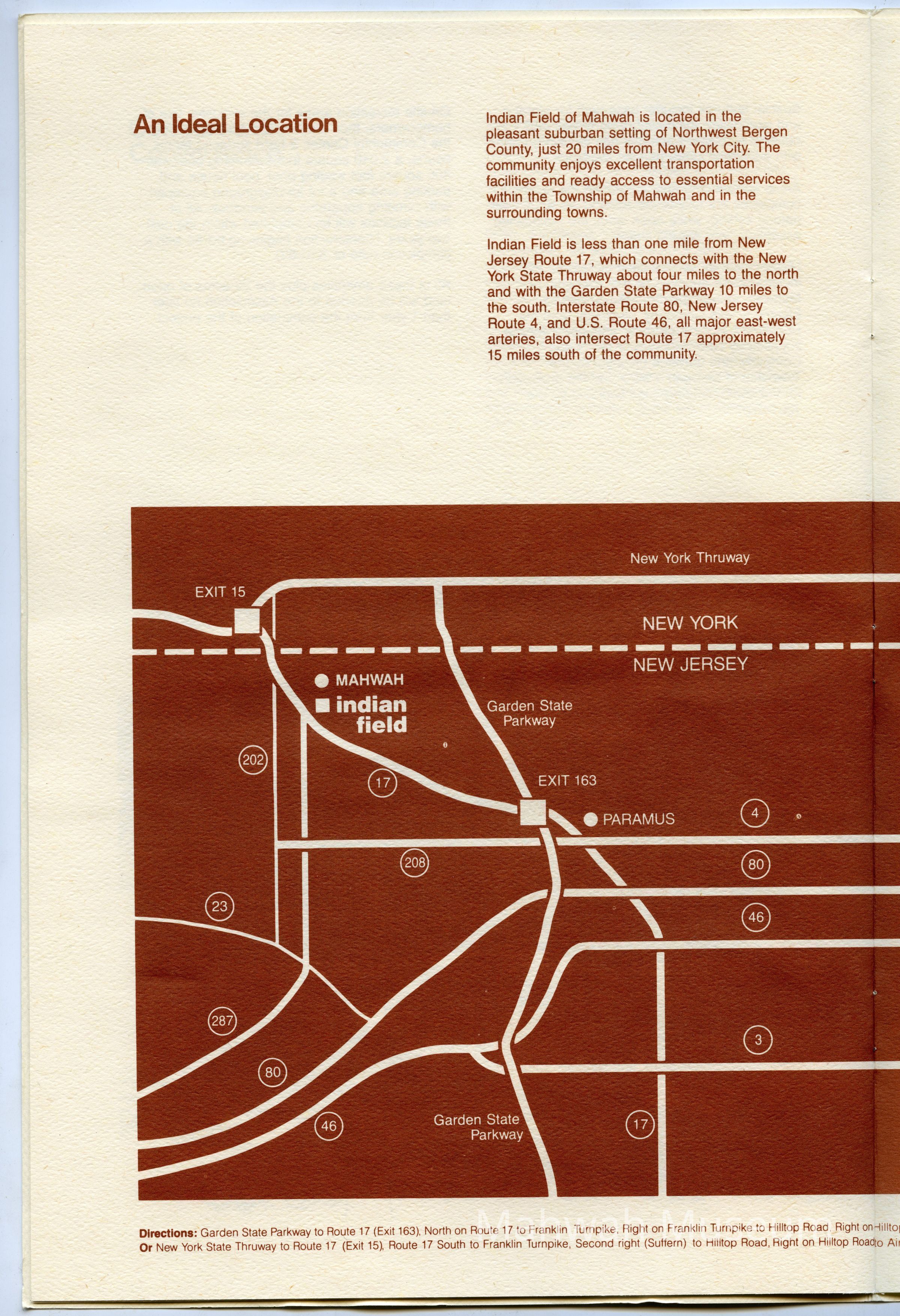 Nineteen-page brochure for Indian Field development in Mahwah, NJ