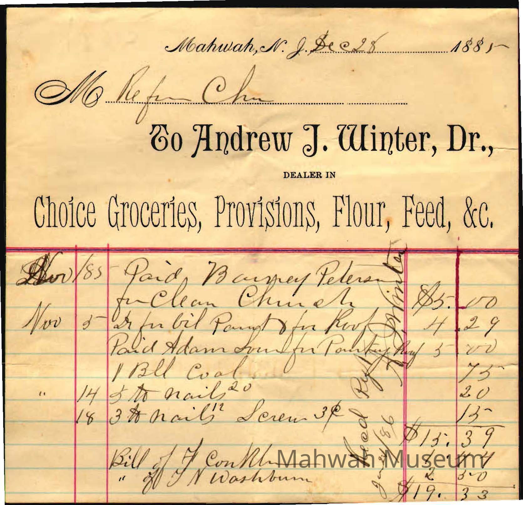 Invoice from A.J. Winter for reimbursement for expenses.Collection