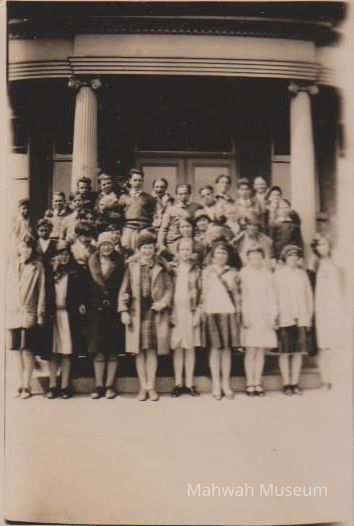 Isabel, age 11, at Rachel Winter's House (1924). Mahwah Public Grammar School Graduation Day (1928). Photo of (from left to right) Isabel, Mildred Winter (John's daughter), and Ruth Simpson (Minister's daughter). Personal collection of letters, photos, and other documents of Isabel Hudson.