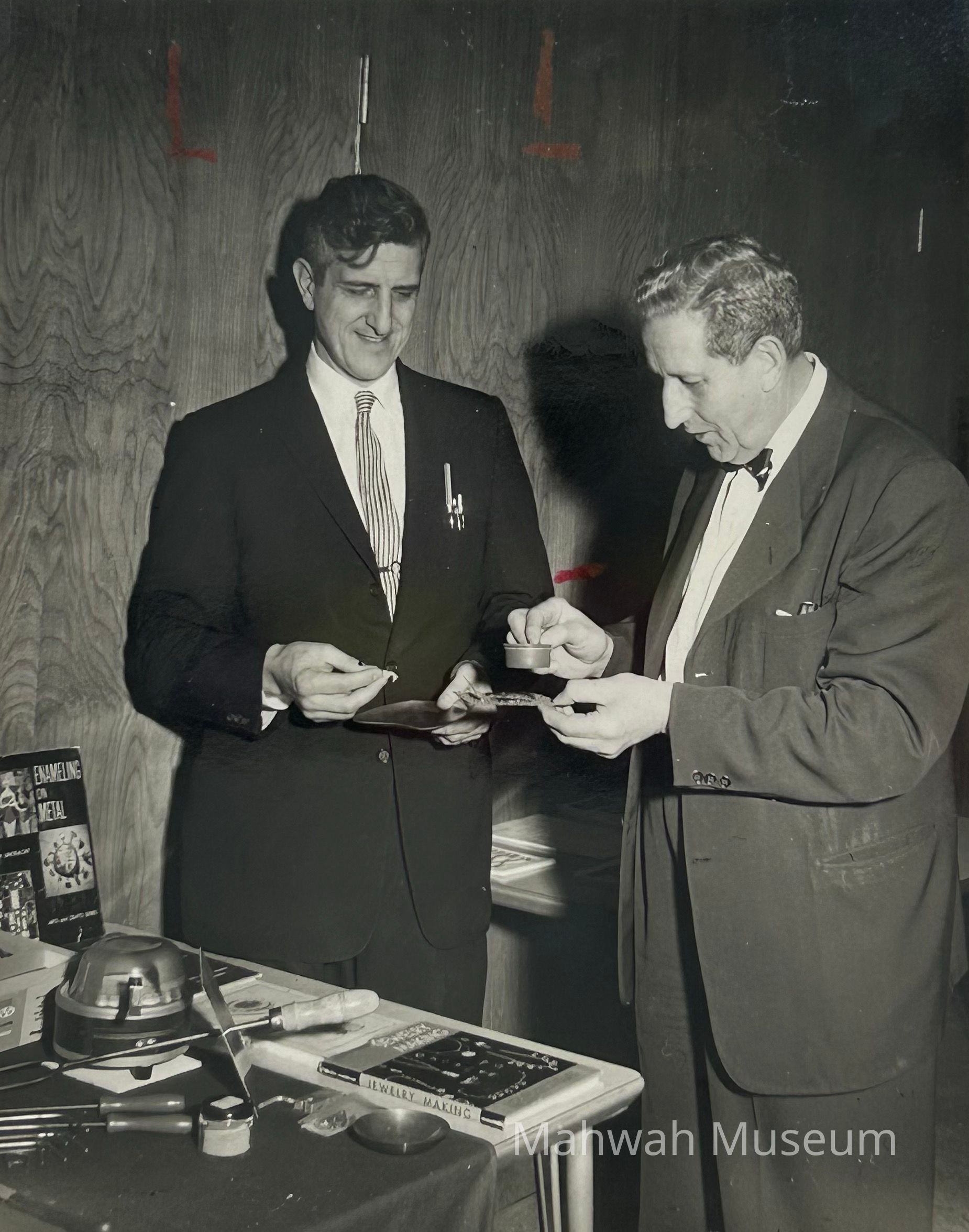Photo of the then principal of Mahwah High School at the time, Principal Bishop, learning to make some jewelry.