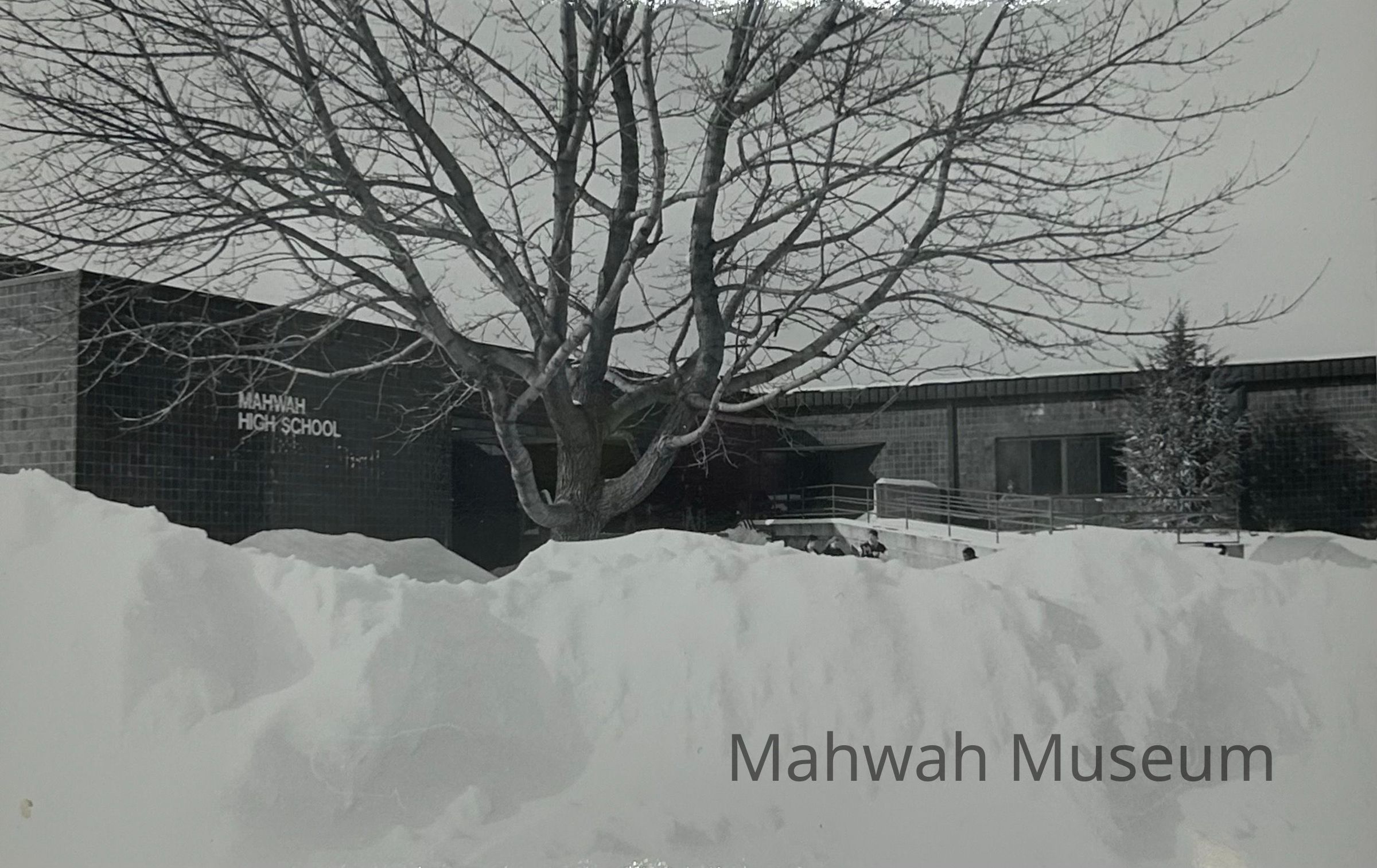 Photo taken by Lee Vold of snow piling up in the edges of the Mahwah High School parking lot. Photo was taken February 10, 1994.