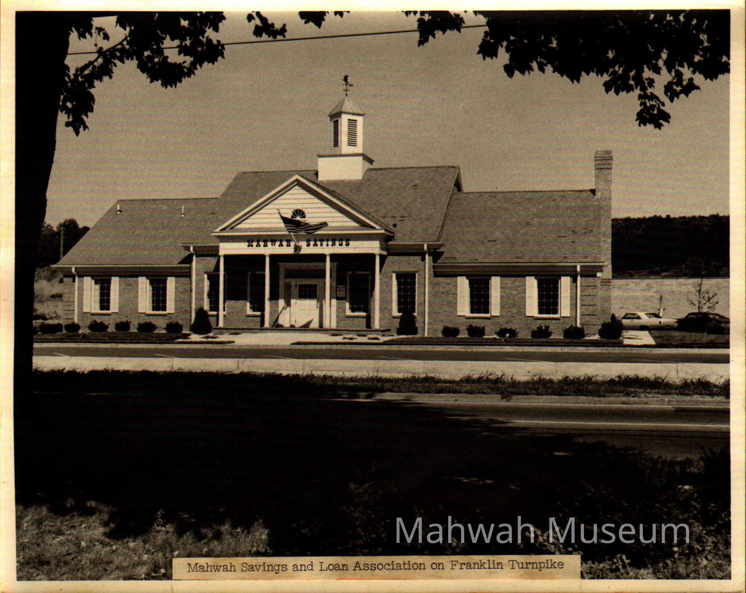 Photograph of Mahwah Savings & Loan Association located on Franklin Turnpike. Undated Black & white.Photograph Details