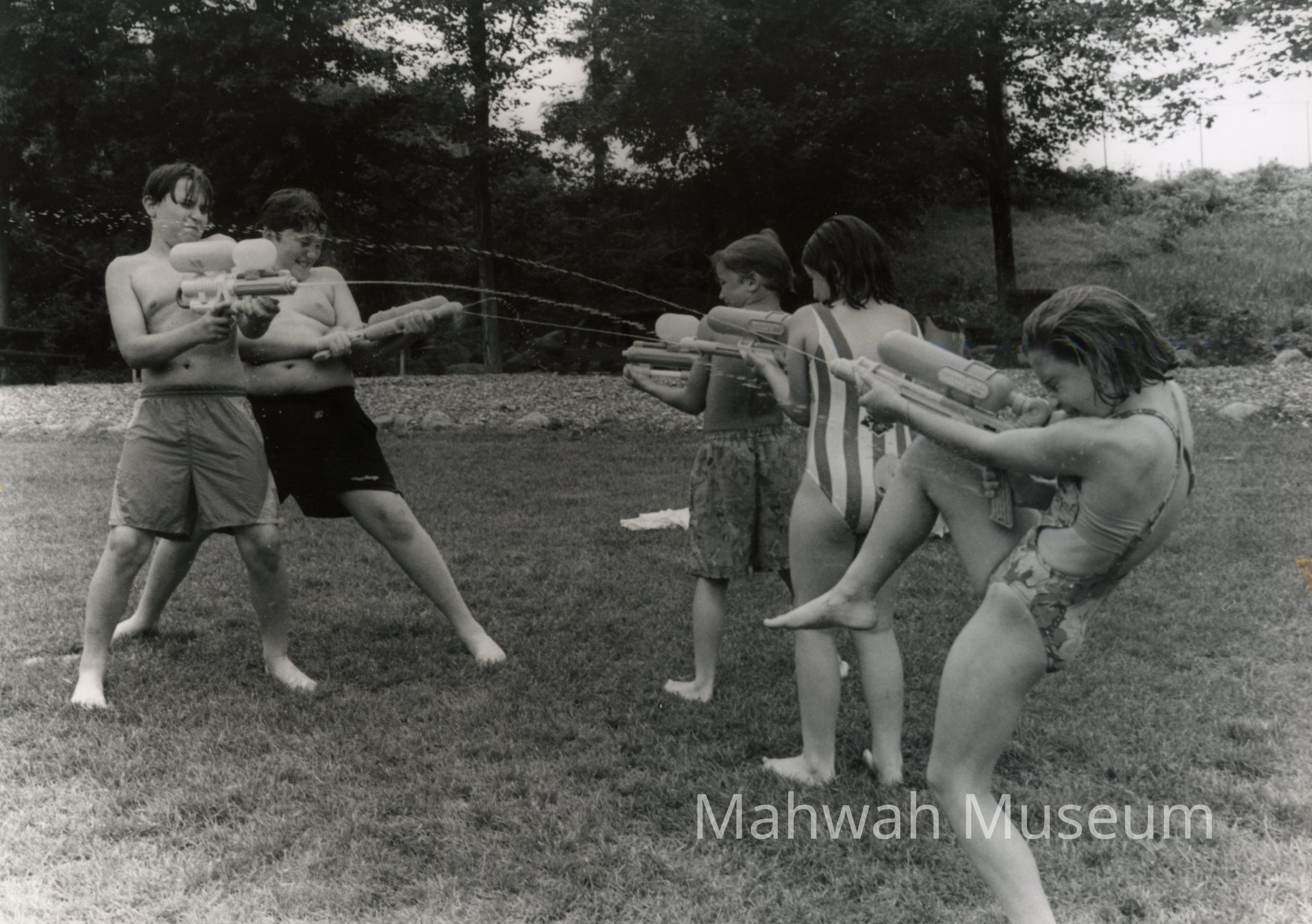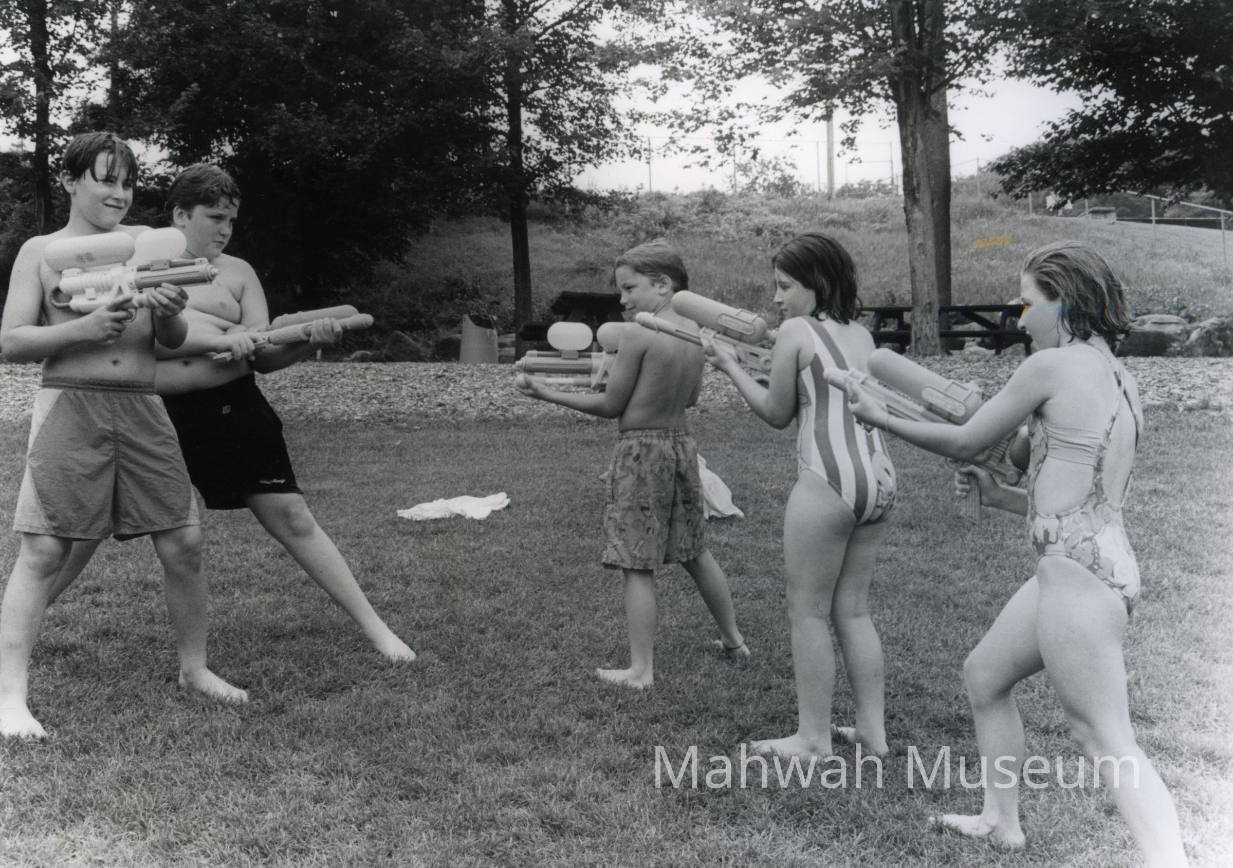 Kids from Mahwah Swim Club fighting with water guns