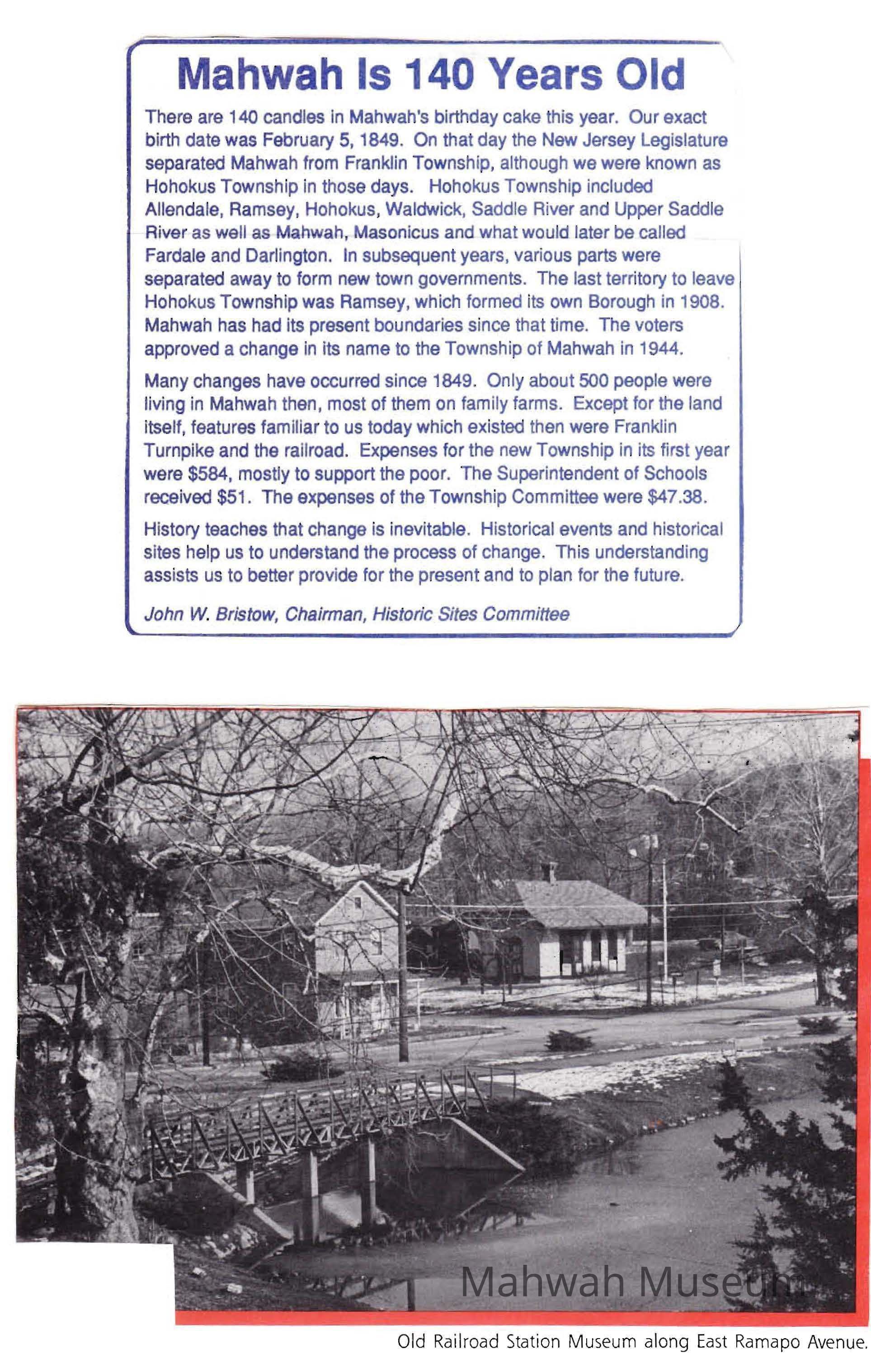 1989 photographs: "Mahwah is 140 Years Old". Personal collection of letters, photos, and other documents of Isabel Hudson.