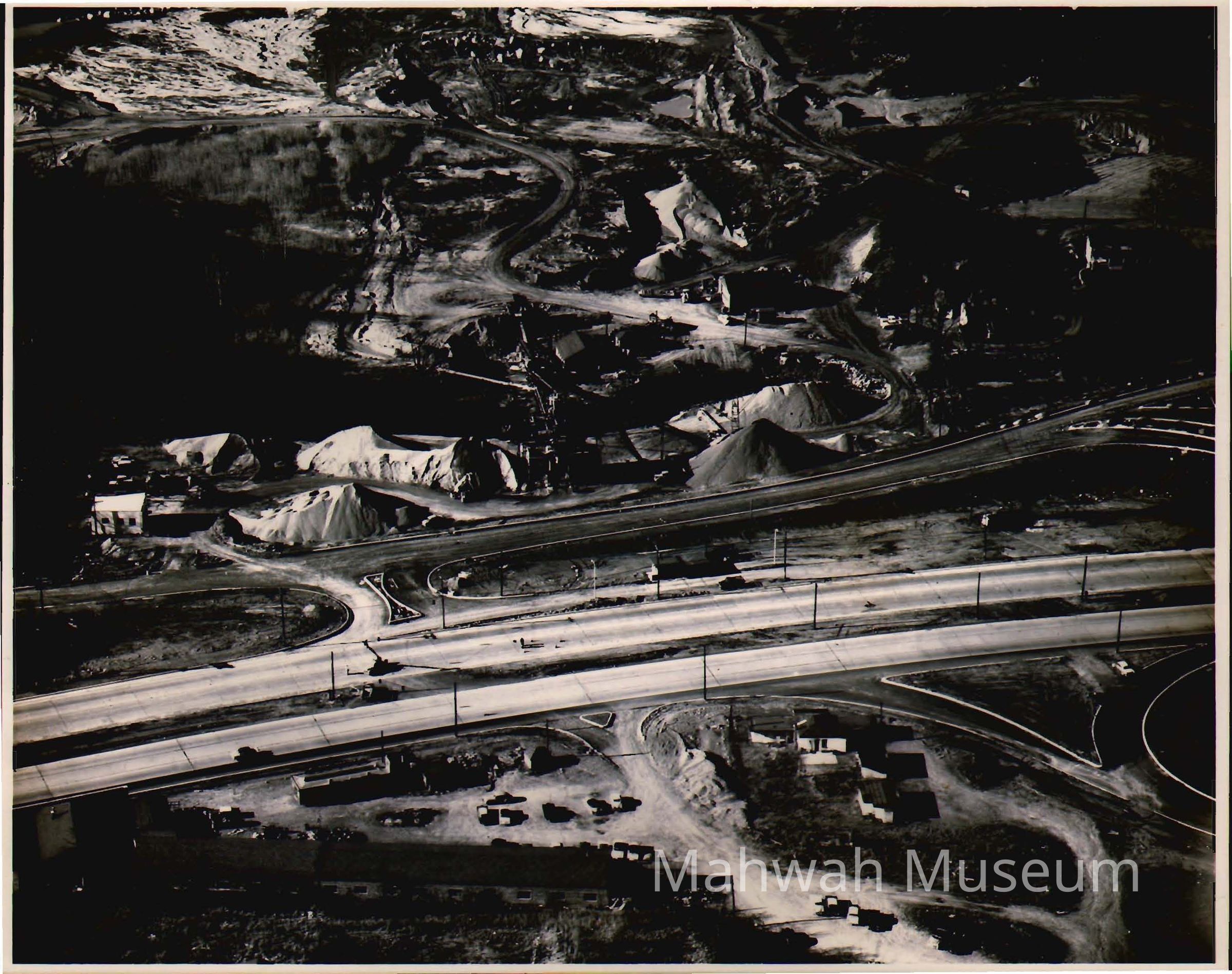 Aerial photo of McKee Bros. Inc. sand pit & initial construction of Route 17.