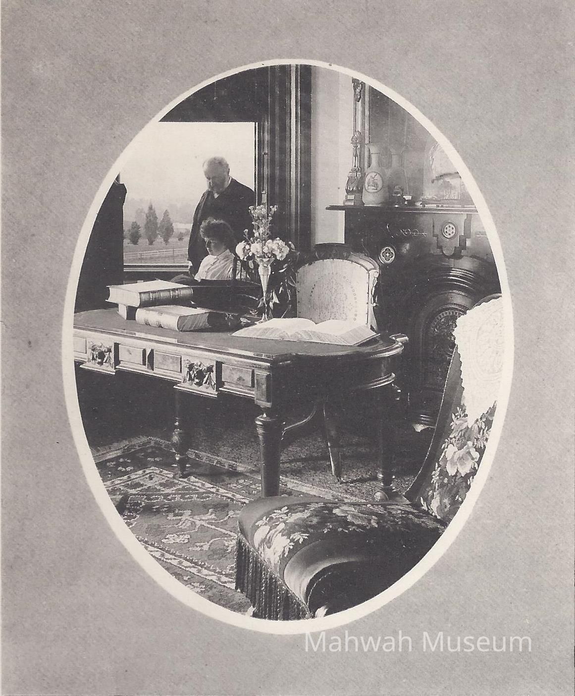 Colonel Ezra Miller and Mabel (grandchild) in library/study.Collection
