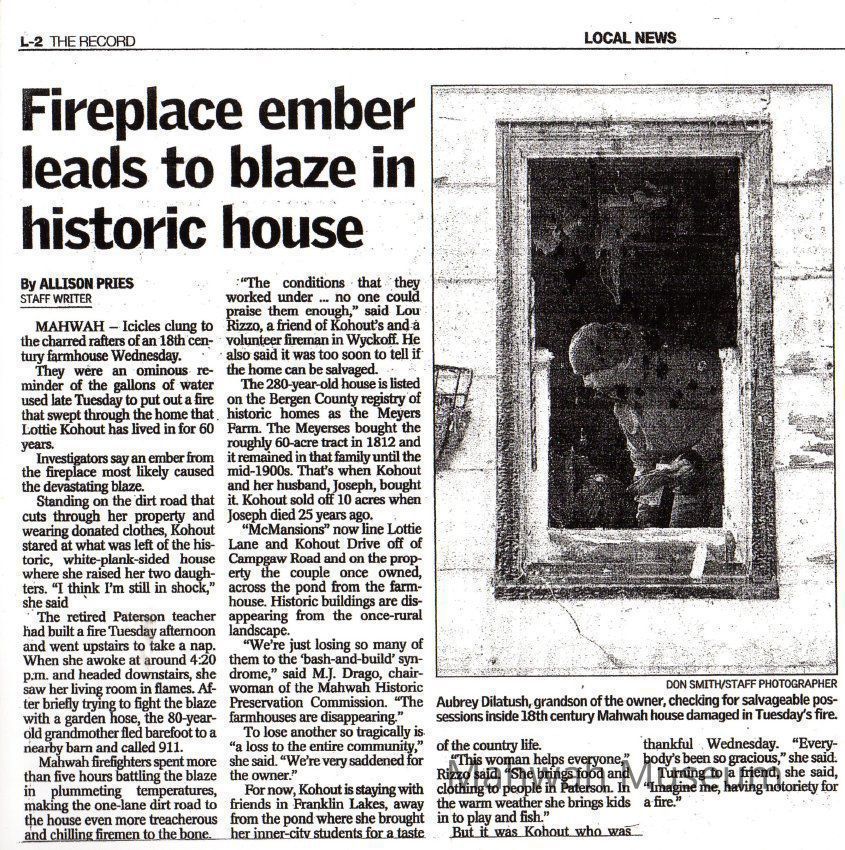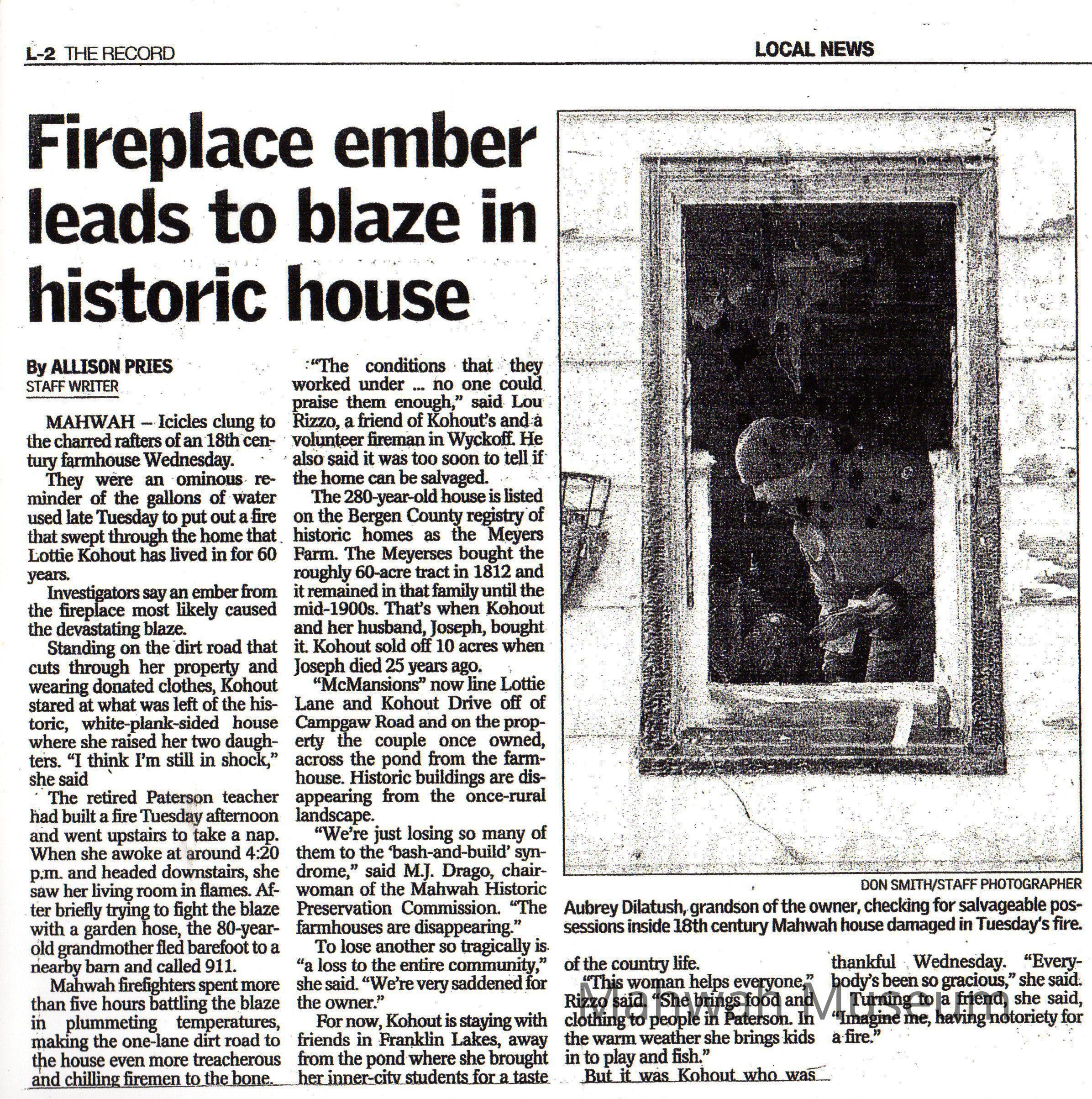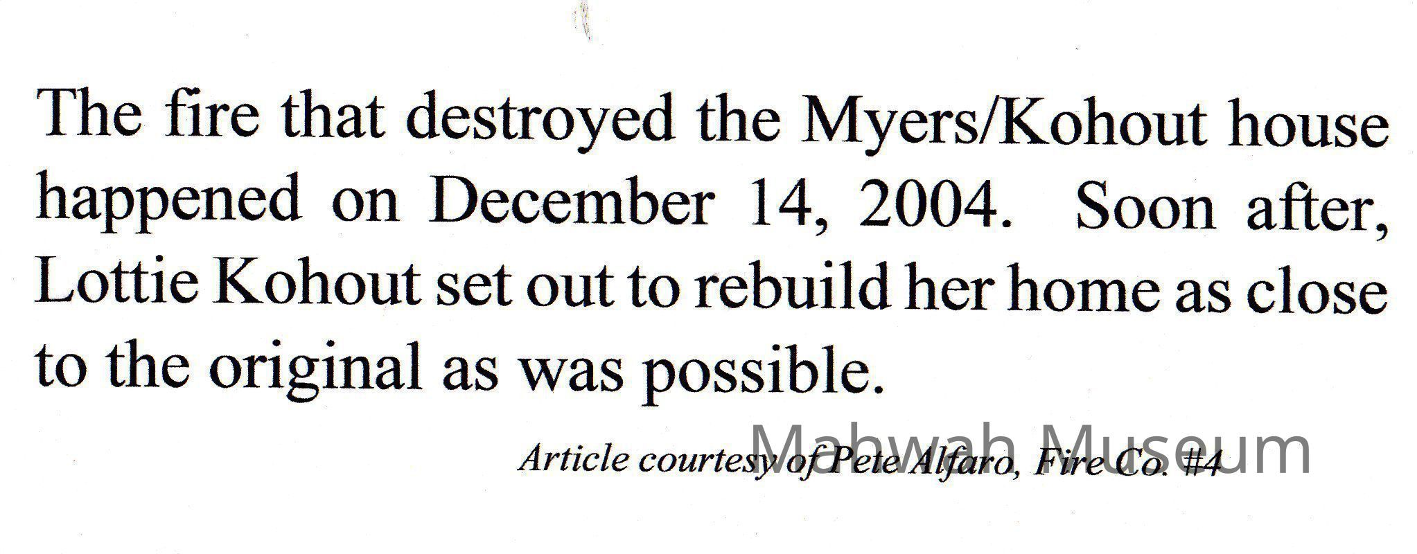 Myers/Kohut House Fire News Clipping
