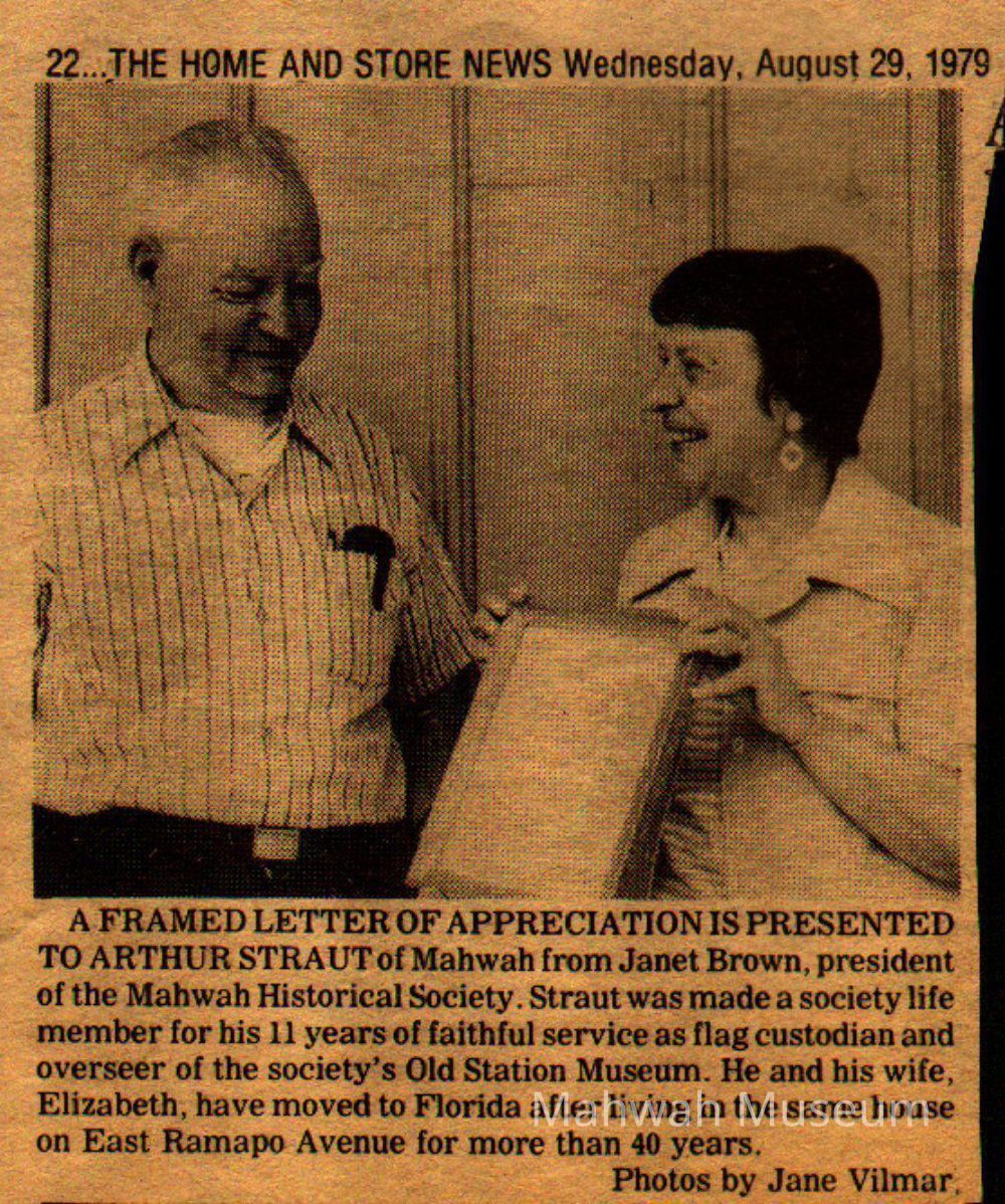 1: Letter of appreciation to Arthur Straut from Janet Brown. Dated August 29, 1979.