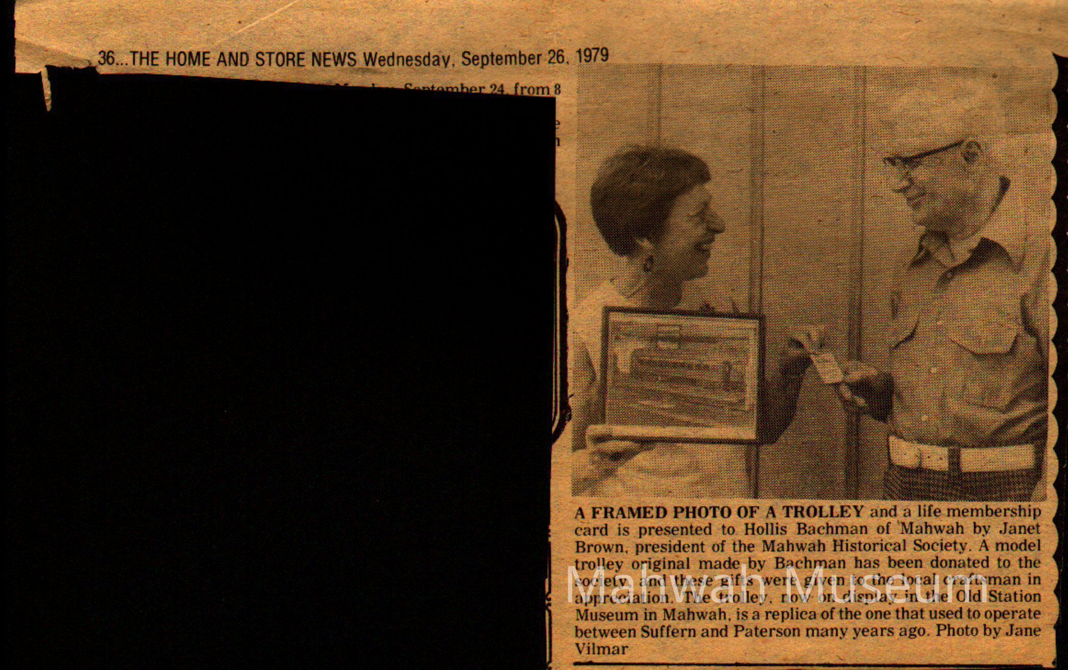 2: Framed photo of trolley & life membership to Hollid Bachman by Janet Brown. Dated September 26, 1979.Photograph Details