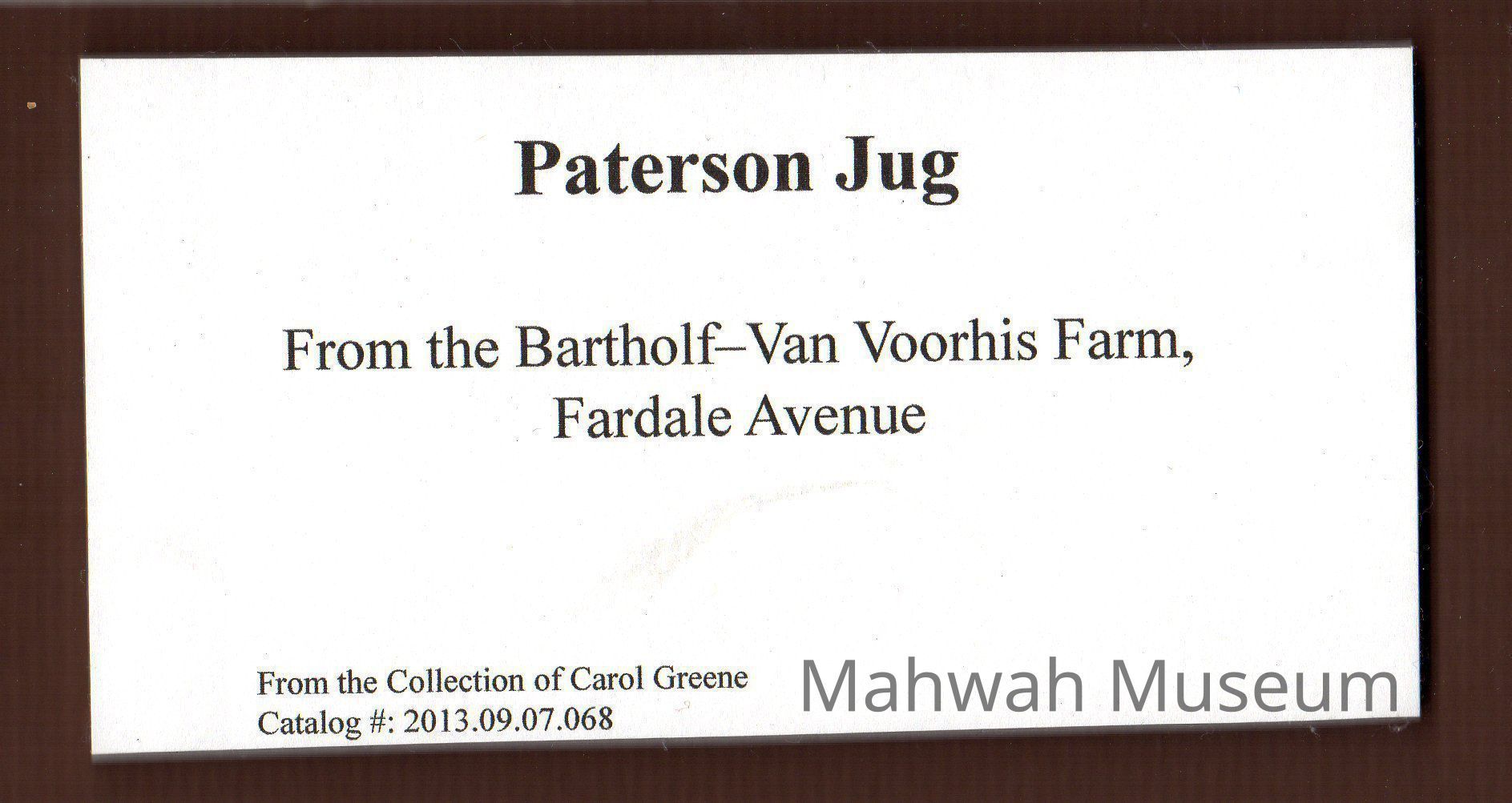 Paterson Jug from the Bartholf Van-Voorhis FarmEntry/Object ID
