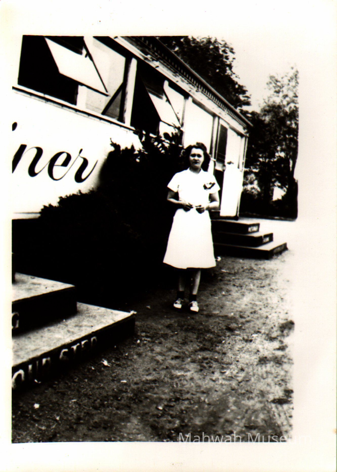 Photograph of Peggy Dezurney in front of original Pal's DinerPhotograph Details