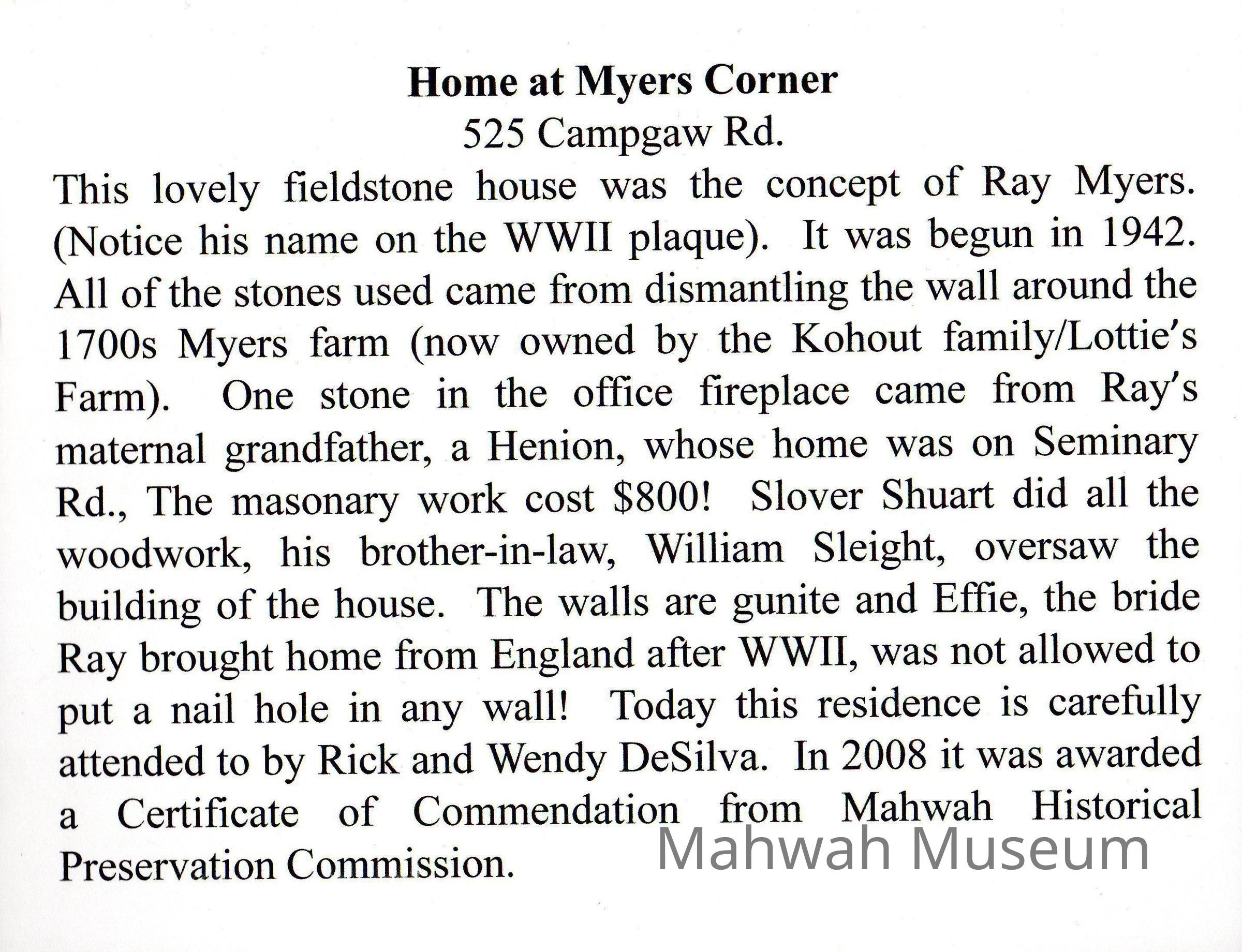 Home at Myers Corner. Caption in exhibit is 2013.09.07.254A. From Neighborhoods of Mahwah Exhibit Panel 2013.09.07.237.