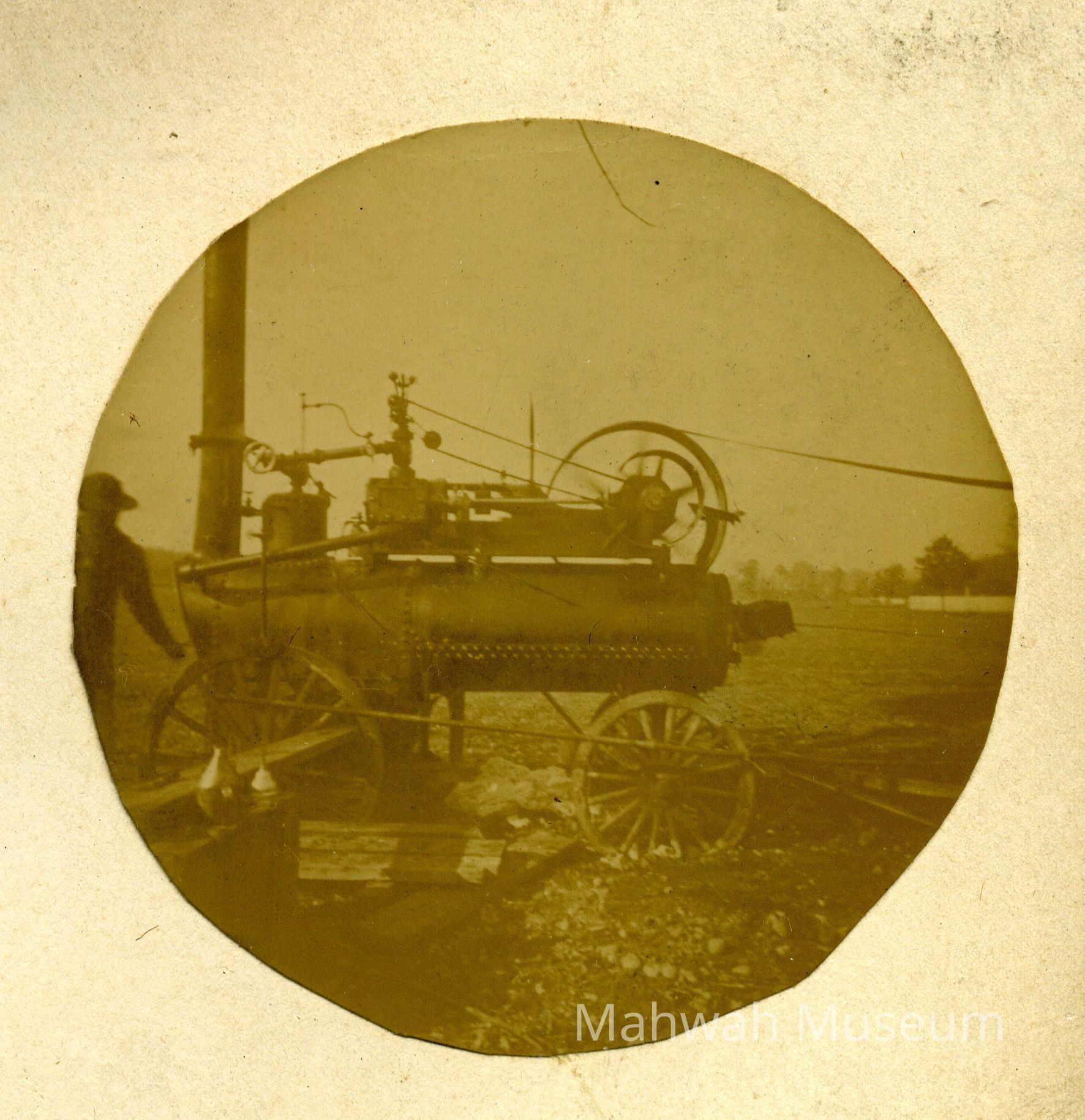 Three photographs of a steam boiler on wheels on the Havemeyer Estate.Photograph Details