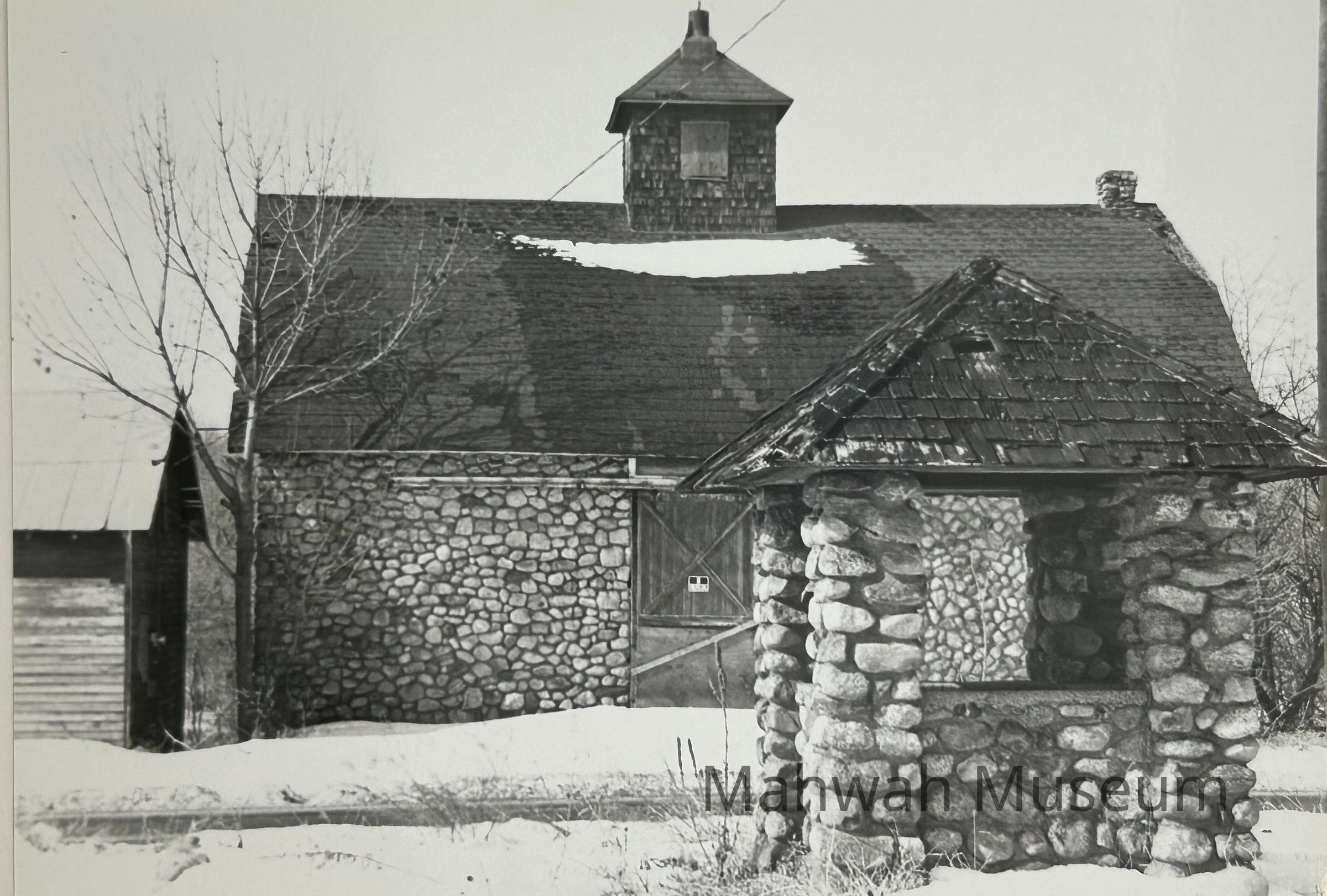 A photograph of the Pelz Barn and water well, circa 1900. The picture was taken by Lee Vold on February 16th, 1988