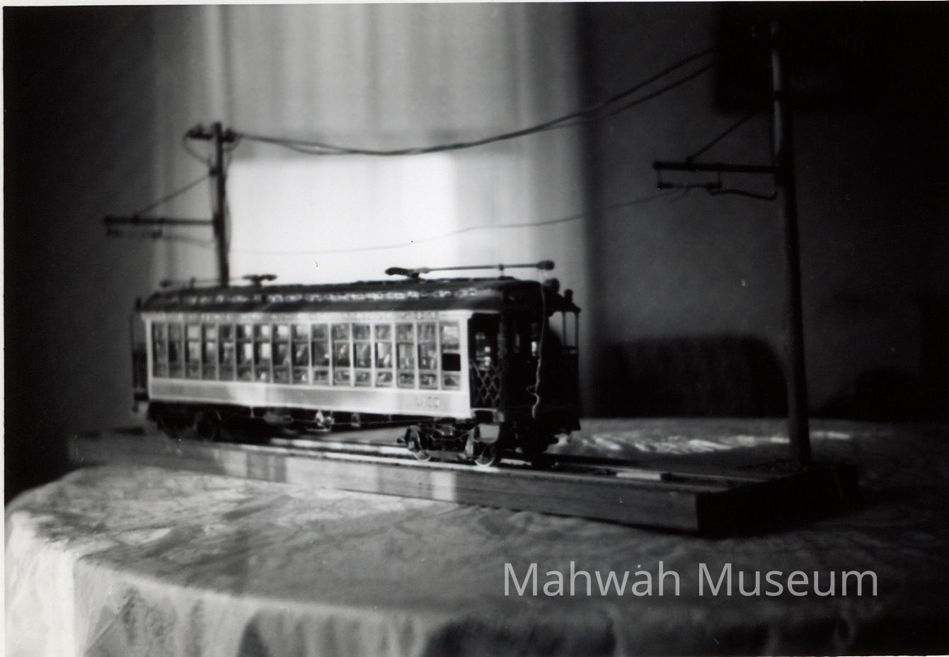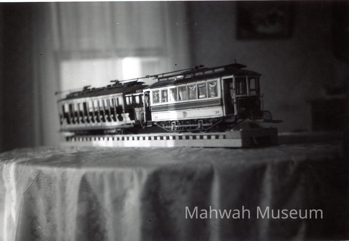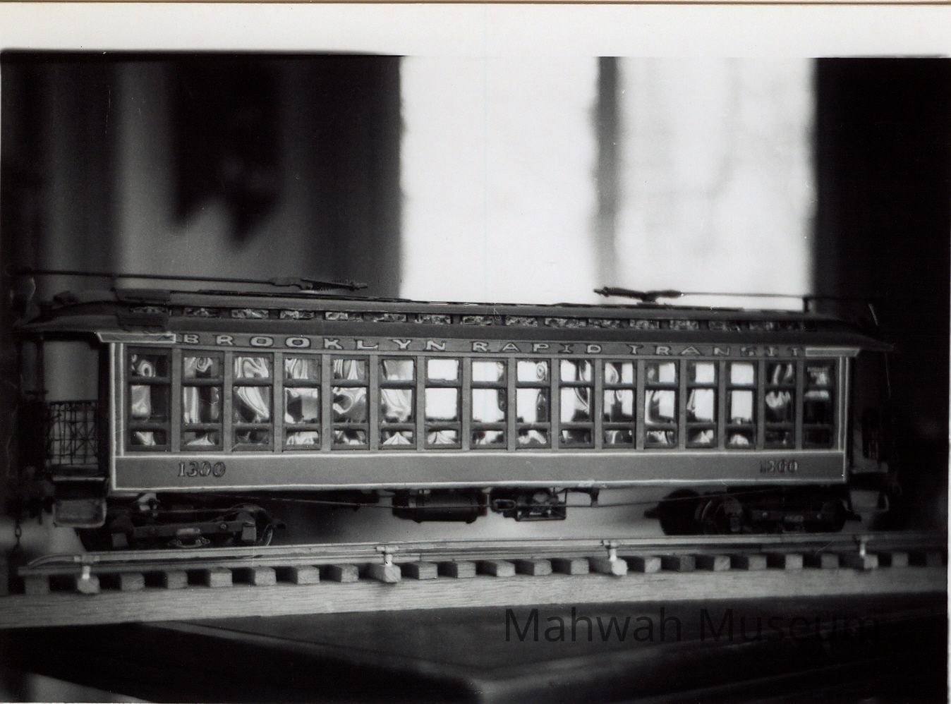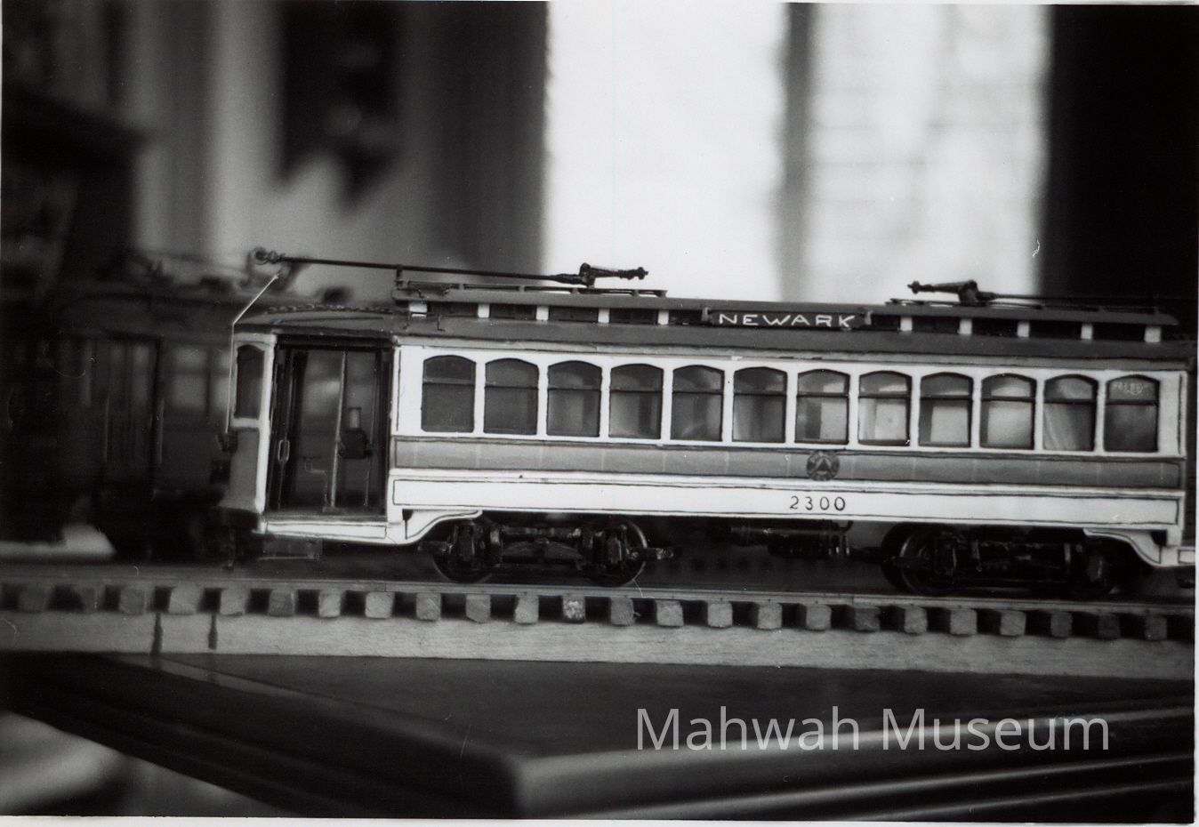Black and white photos of models of trolleys and subway carsCollection