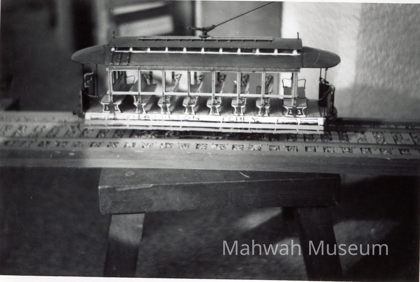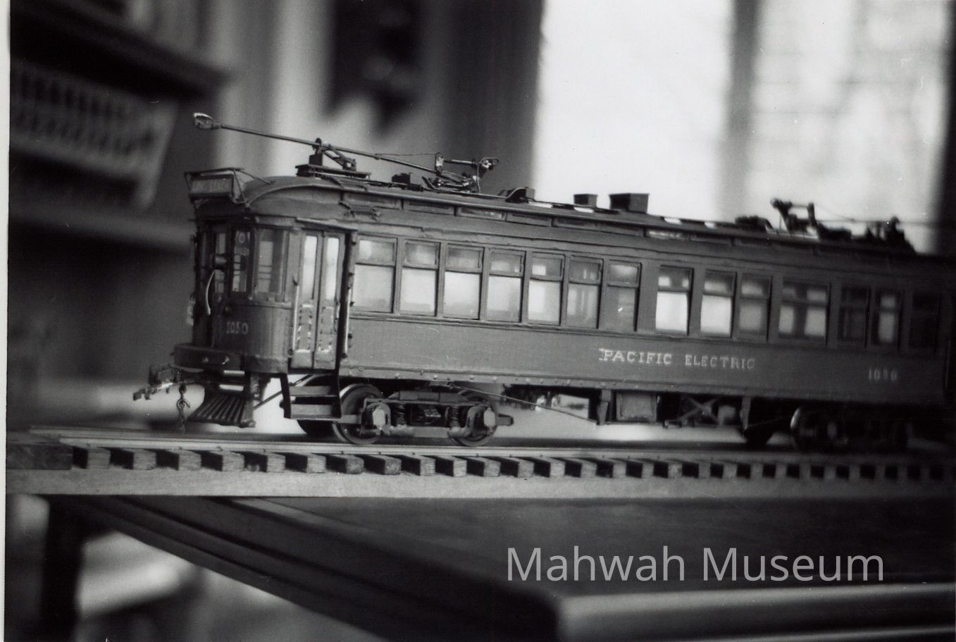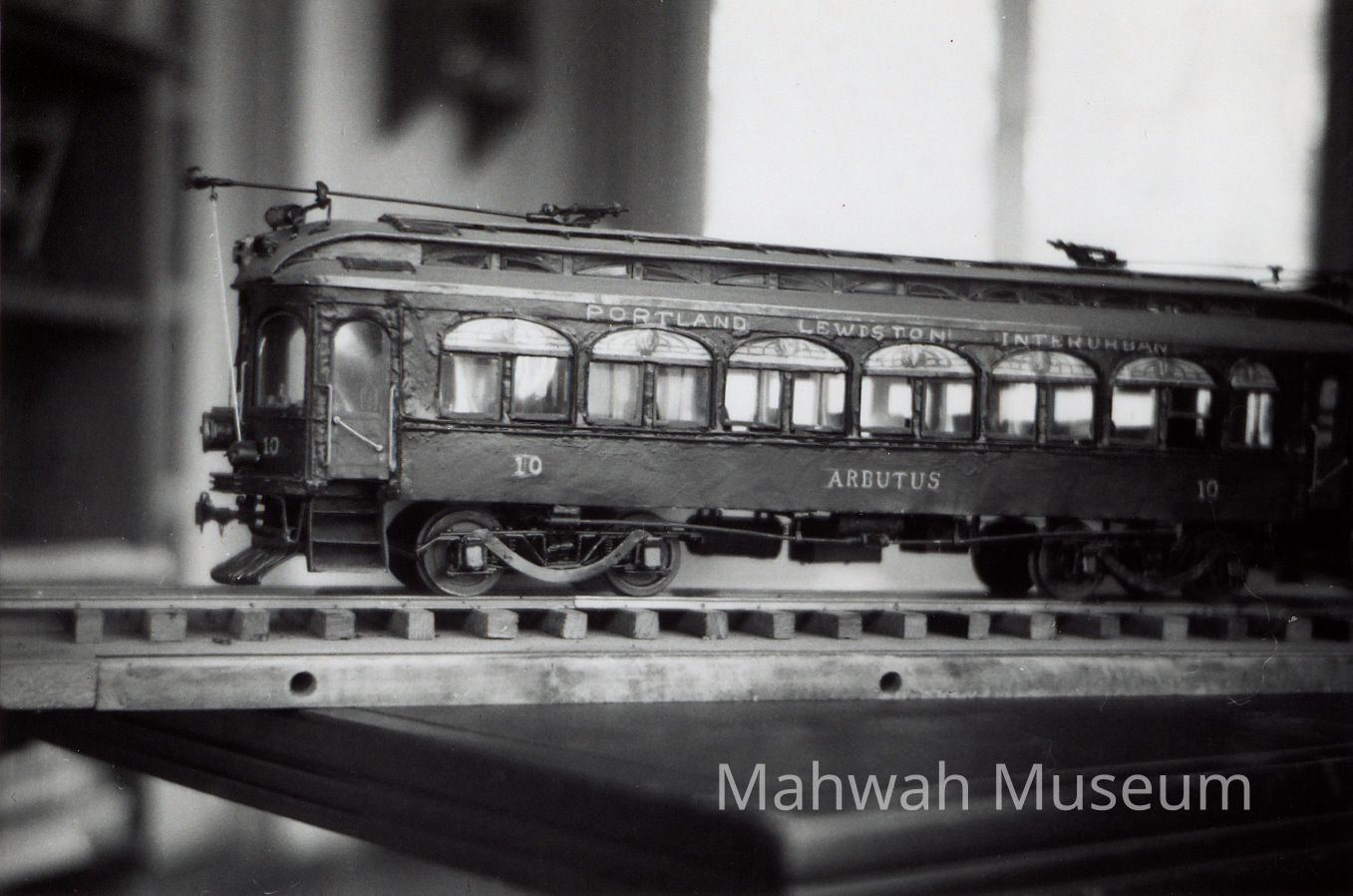 Black and white photos of models of trolleys and subway carsCollection