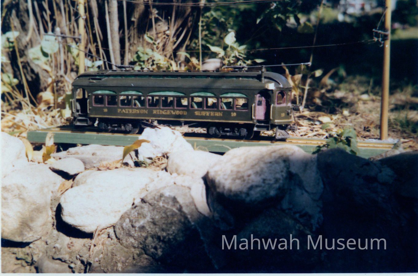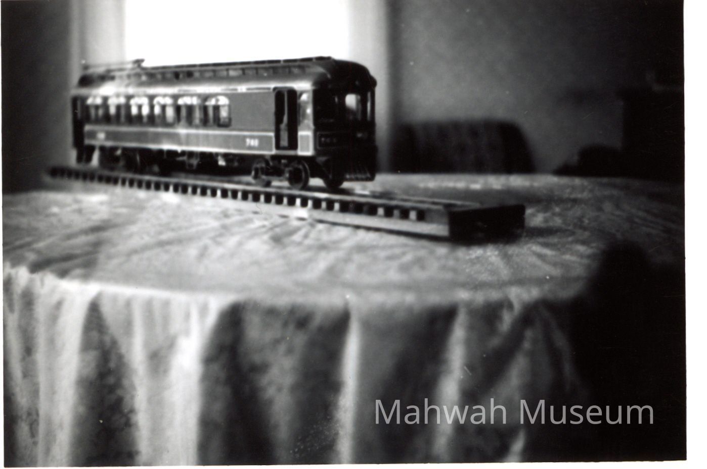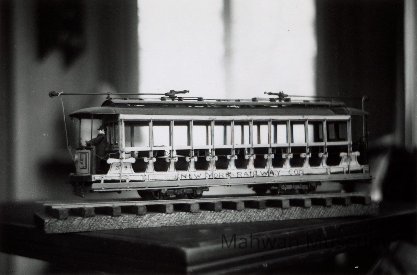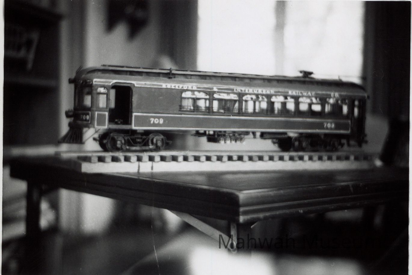 Black and white photos of models of trolleys and subway carsCollection