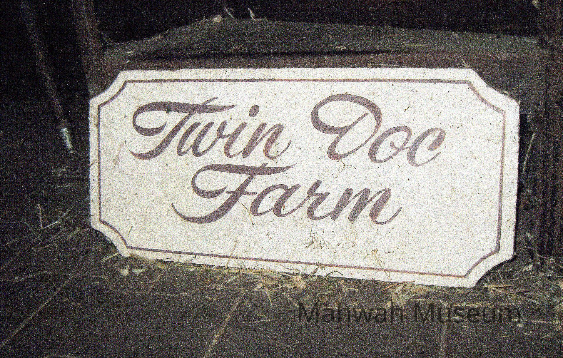 Twin Doc Farm sign. Caption in exhibit is 2013.09.07.271A. From Neighborhoods of Mahwah Exhibit Panel 2013.09.07.243.Photograph Details