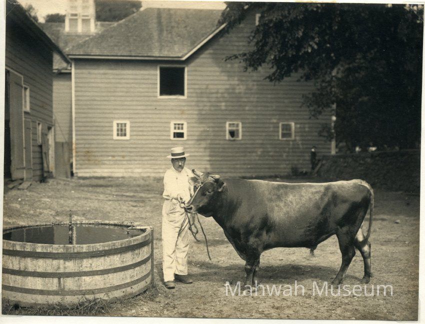 Valley Farm worker with Black Prince, Valley Farm's prize bull, Albert Darling's estatePhotograph Details