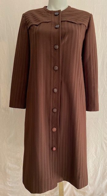 Double knit long jacket, Buttons up the front 8 buttons Primary Color: BrownCollection