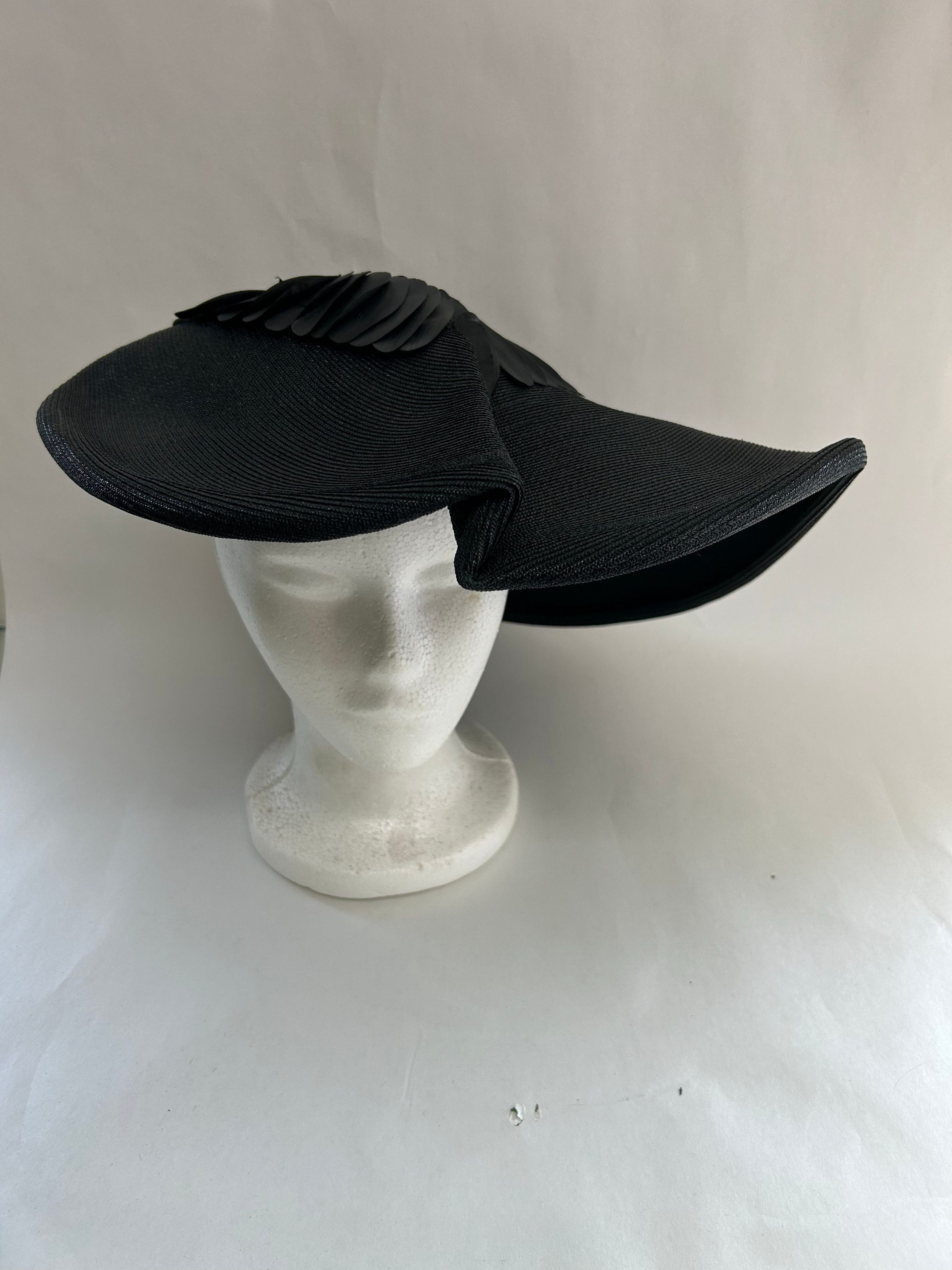 straw hat, some sort of fabric around brim of hat Primary Color: Black Shape: circleCollection