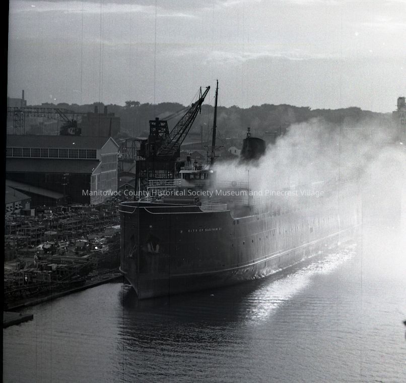 Carferry City of Saginaw burns while docked at Manitowoc Shipbuilding. Photograph taken on July 30th, 1971.