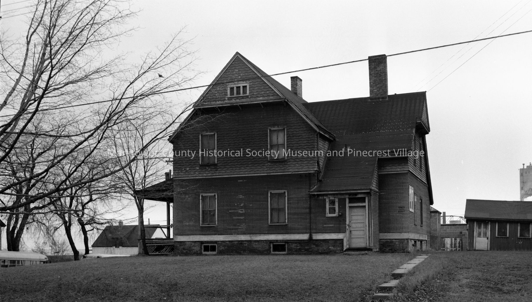 Home at 114 North 5th Street Manitowoc looking south at the north side of home from York street. In distance is Rahr Malting aero light on top of building on Jay street. This was home of lighthouse keeper in the past. Photograph taken on November 25th, 1967.Made/Created
