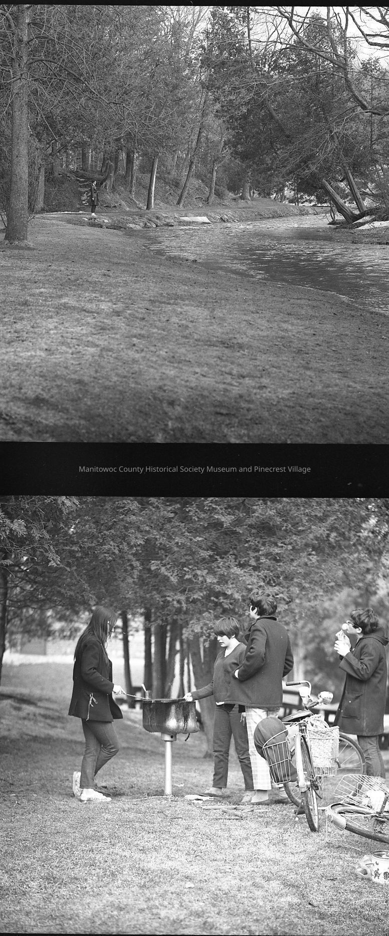 Silver Creek Park looking southeast from concession stand. Pathway to lake is along creek at left. Using old grill to fry out.