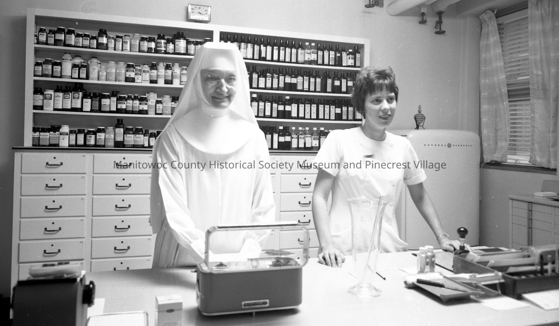 Holy Family Hospital, 2300 Western Ave. Manitowoc, pharmacy. Photograph taken in 1966.