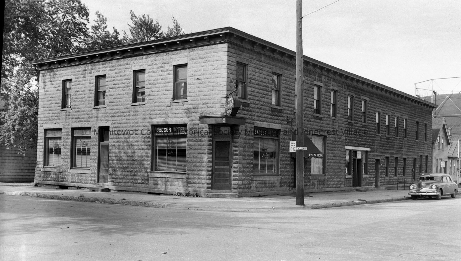 Badger Bar Hotel 901 Chicago Street Manitowoc. At right Riviera Cafe, 903,905,907; home, 909; Kuchenbecker Grocery, 913 Chicago Street. Photograph taken on September 14th, 1951.Made/Created