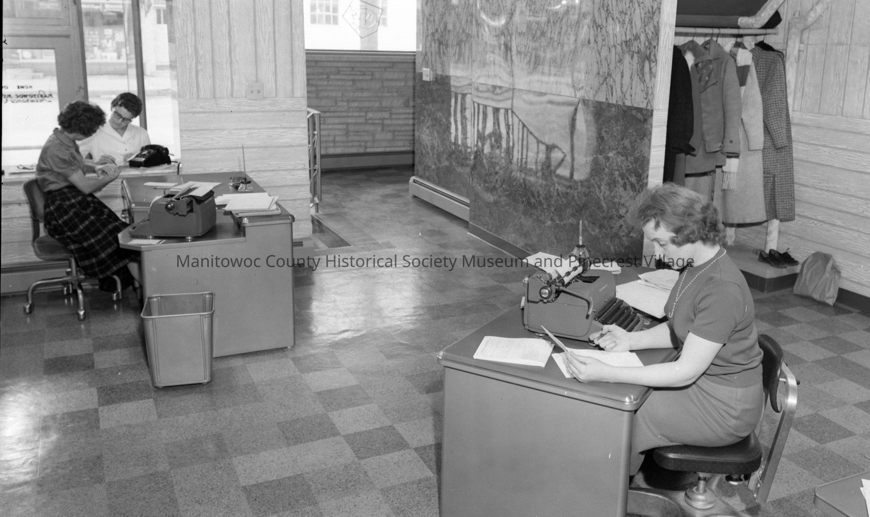 Manitowoc Mutual Fire Insurance interior, 709 York Street Manitowoc. Photograph taken on December 4th, 1959.
