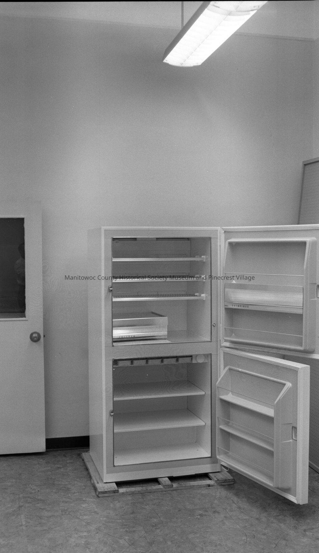 Manitowoc Equipment Works, 621 Quay Street Manitowoc; new double door refrigerator. Photograph taken on June 26th, 1961.