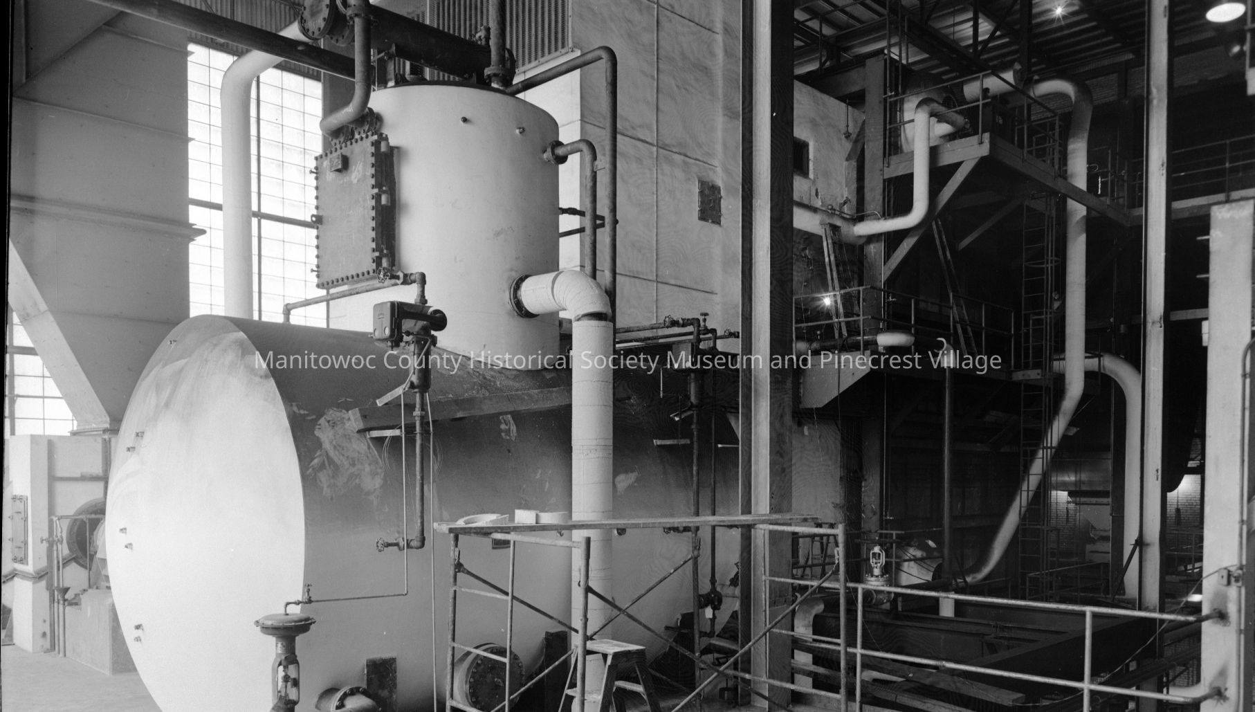 Manitowoc Public Utilities, 621 Columbus Street Manitowoc; power plant interior, de-mineralizer tank. Photograph taken on January 11th, 1964.Made/Created