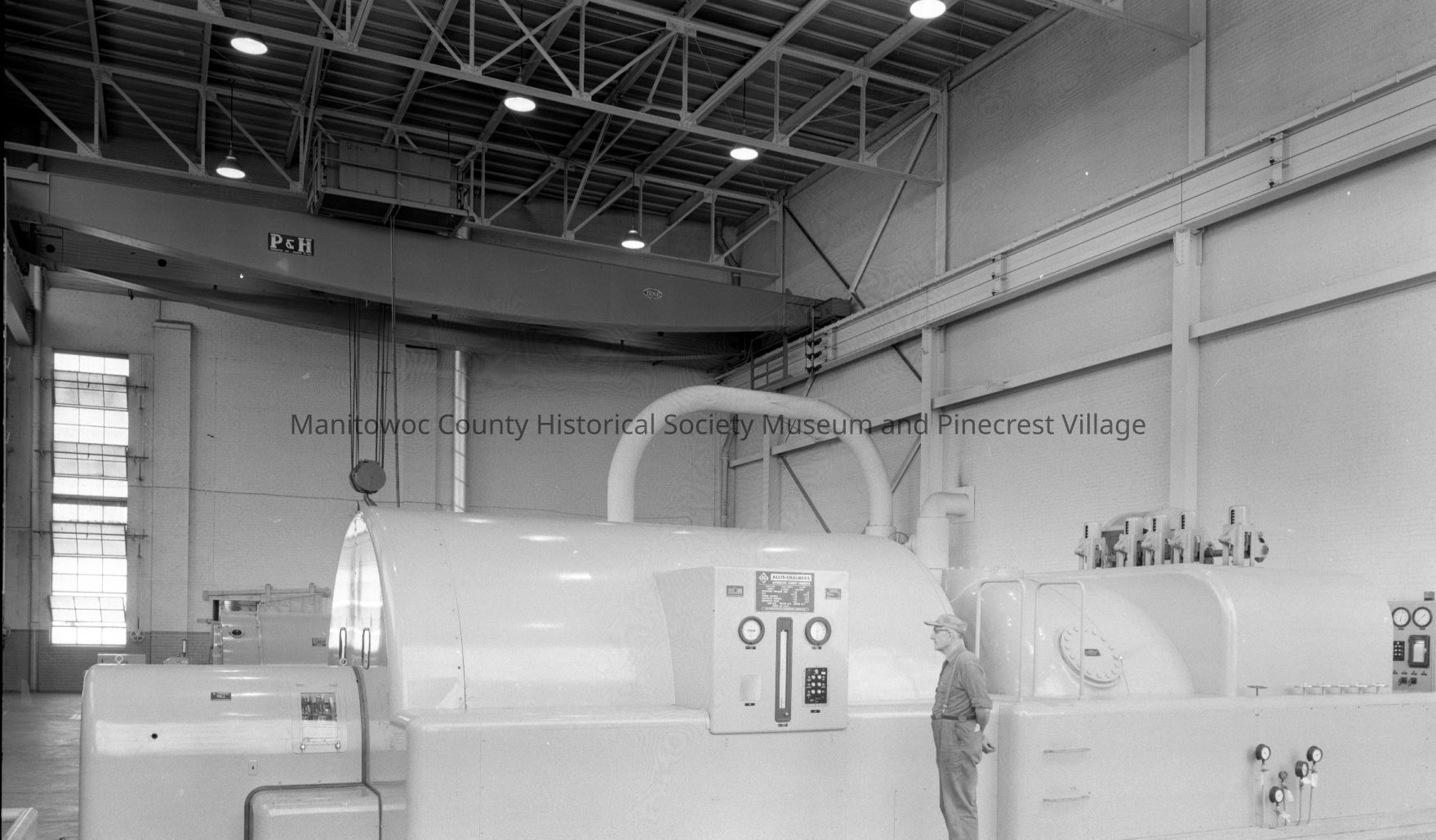 Manitowoc Public Utilities, 621 Columbus Street Manitowoc; interior with turbine #6 in main plant. Photograph taken on January 11th, 1964.Made/Created
