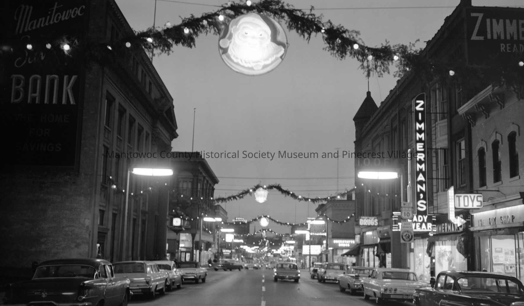 Looking north up 8th Street Manitowoc from Washington street. Night photo. Circa 1965.