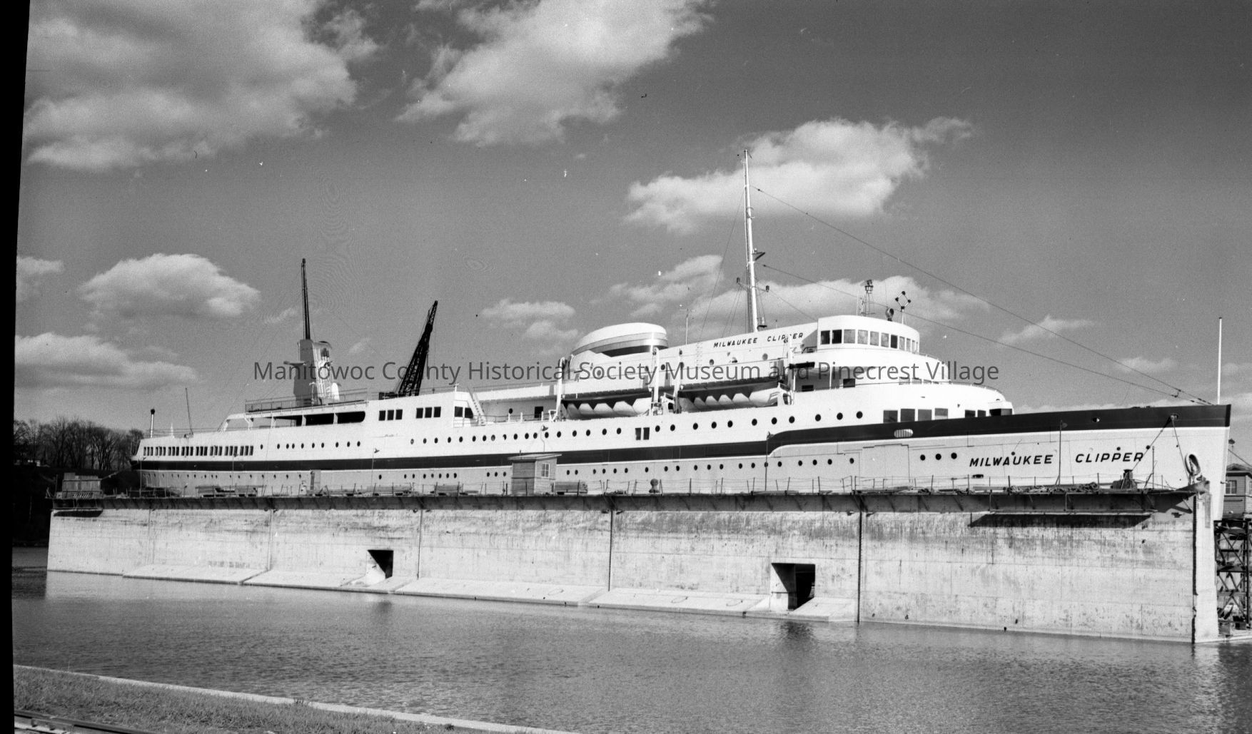 Manitowoc Shipbuilding Company; MIlwaukee Clipper in dry dock. Circa 1950.