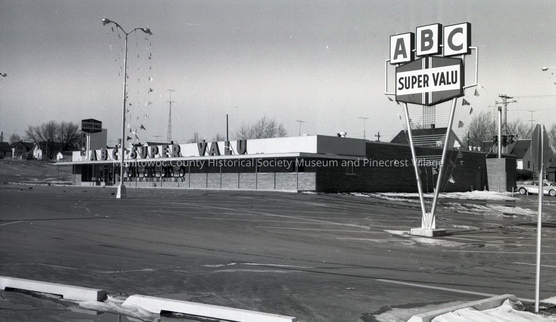 Black and white photo of ABC Super Value Store, South 10th Street, looking from South 10th Street northwest - Circa 1957.
