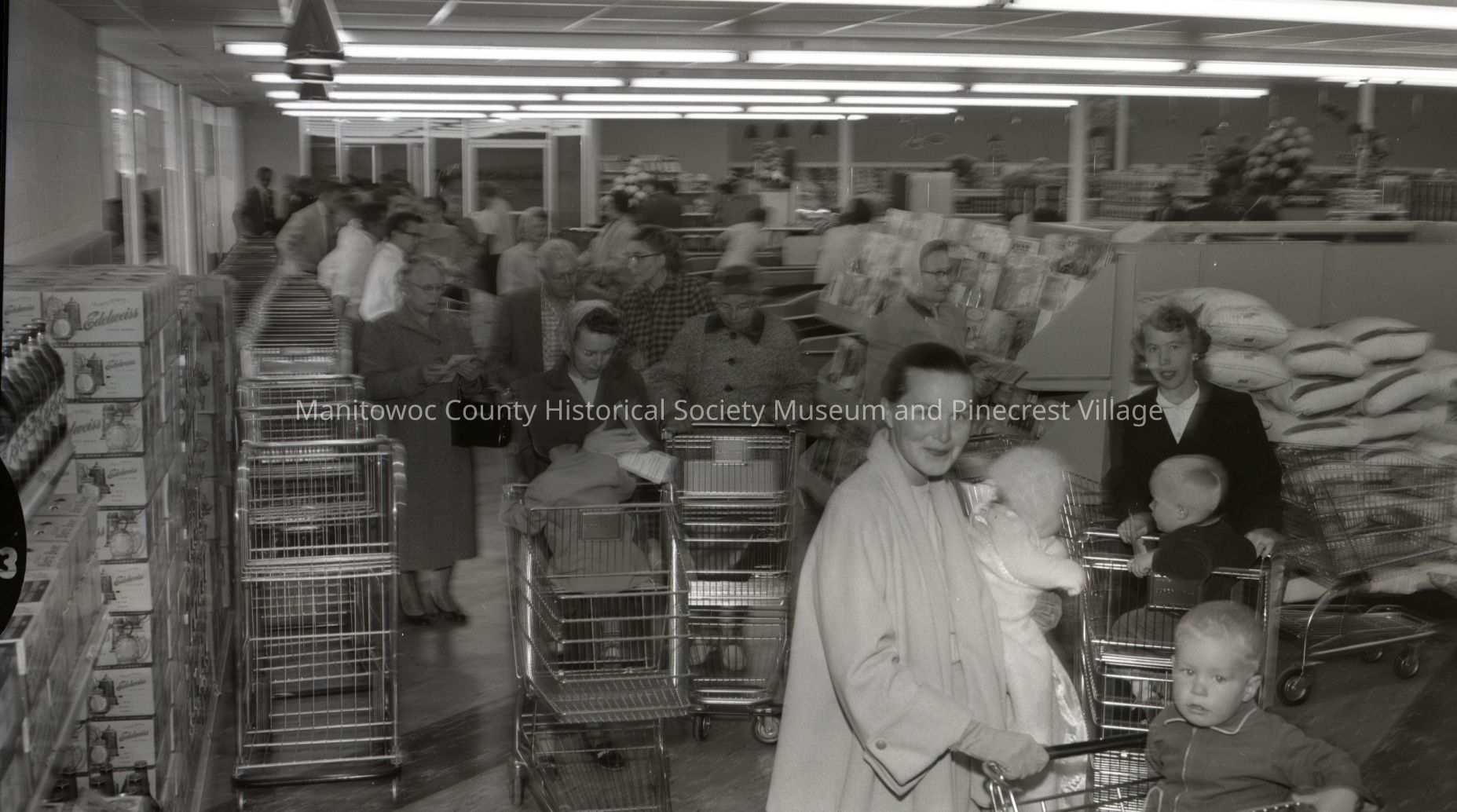 First shopper grabbing a cart at the grand opening of ABC Super Value Store, South 10th Street. Photograph taken October 5th, 1957.Made/Created