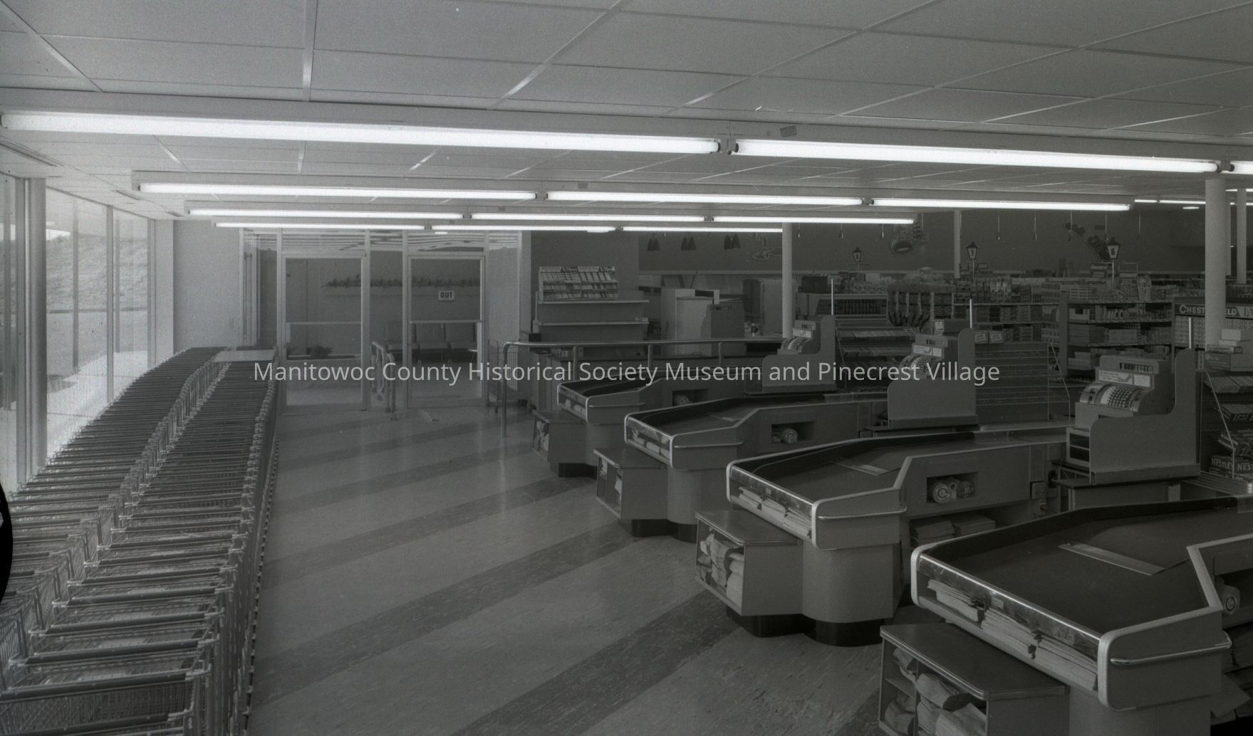 Shopping cart and check-out area at ABC Super Value Store, South 10th Street. Photograph was taken October 5th, 1957.Made/Created