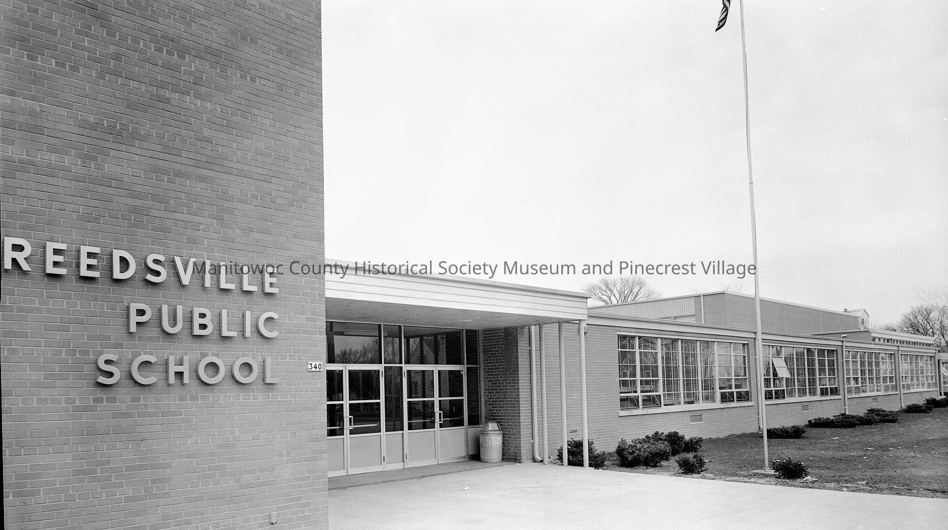Reedsville; new addition to high school front entrance. Photograph taken on April 1st, 1963.