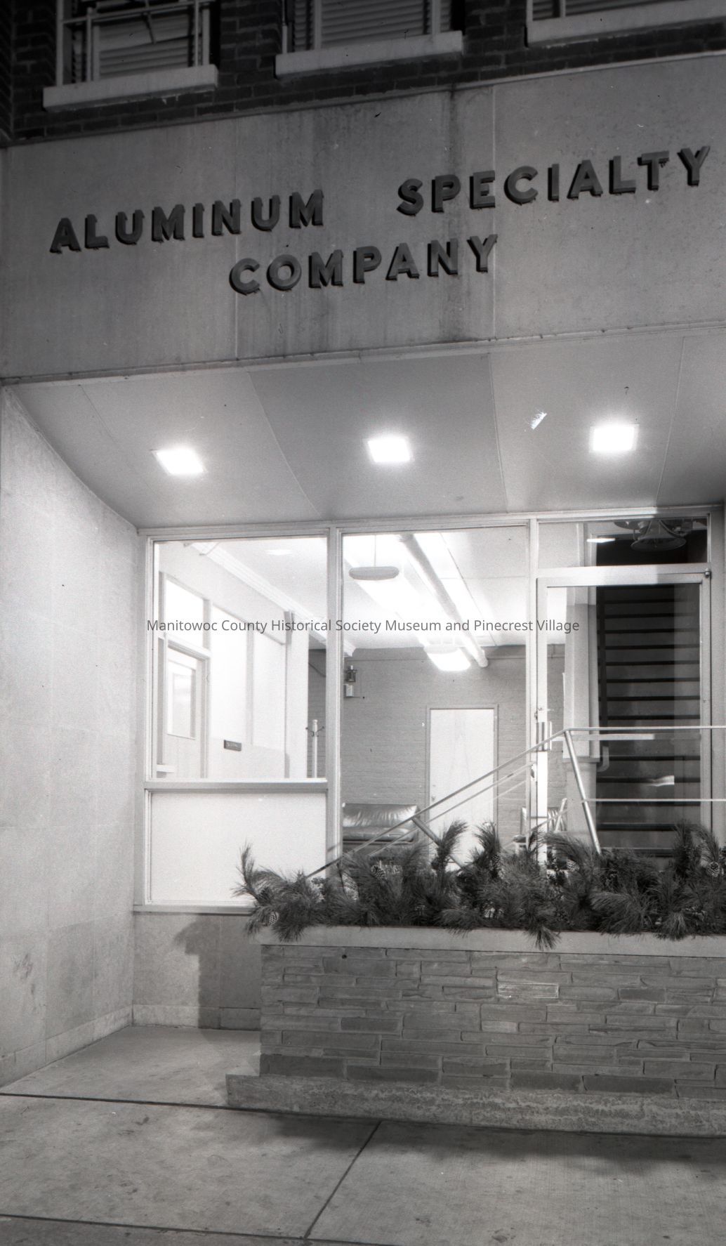 Front entrance at the Aluminum Specialty Company. Address: 1616 Wollmer Street - Circa 1960.
